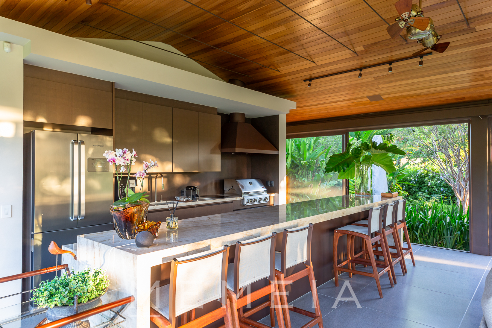 Projeto Gui Mattos muito bem resolvido e com acabamentos diferenciados harmonizando madeira, pedras e muita luz. O paisagismo é de Rodrigo Oliveira.