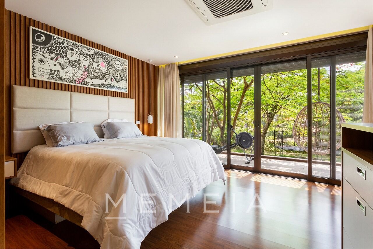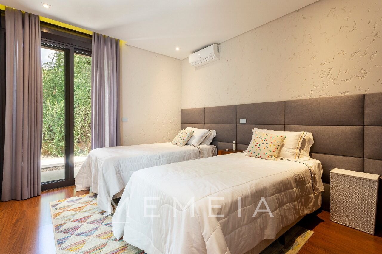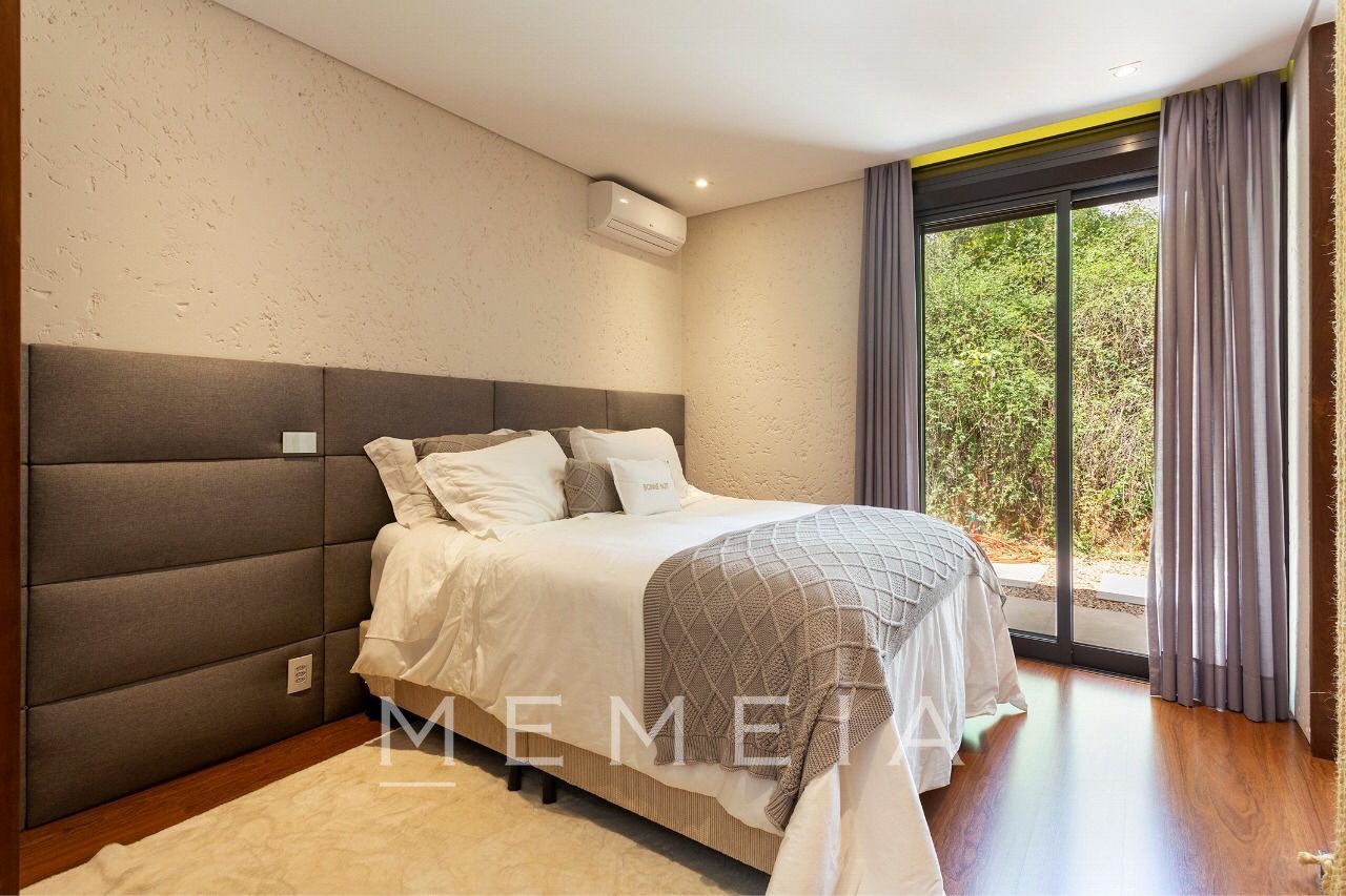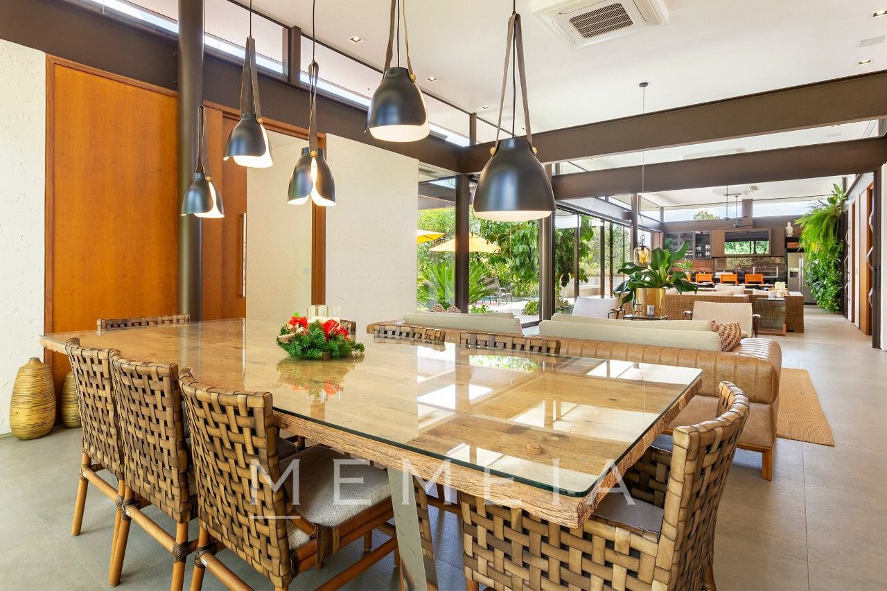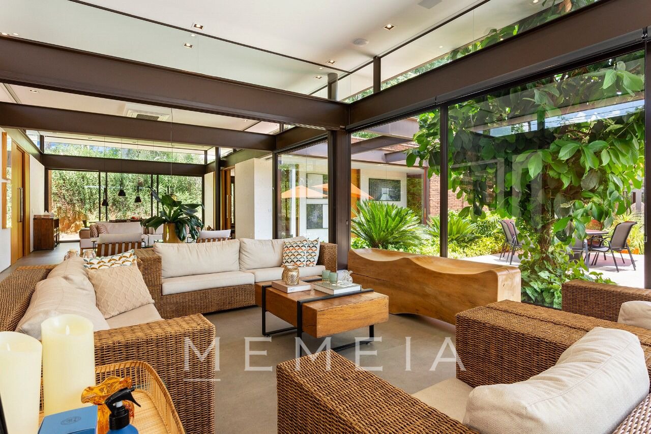 Maravilhosa casa assinada pela Sala 03 Arquitetura, totalmente decorada com peças exclusivas e impecavelmente mobiliada com móveis de design. Totalmente envidraçada, a natureza de um lindo paisagismo e arquitetura se integram. Incrível espaço gourmet completamente equipado, com duas churrasqueiras , além de uma área externa com piscina e fire pit. ar condicionado em todos os ambientes, inclusive na cozinha. A casa conta ainda com uma cisterna e poço artesiano .