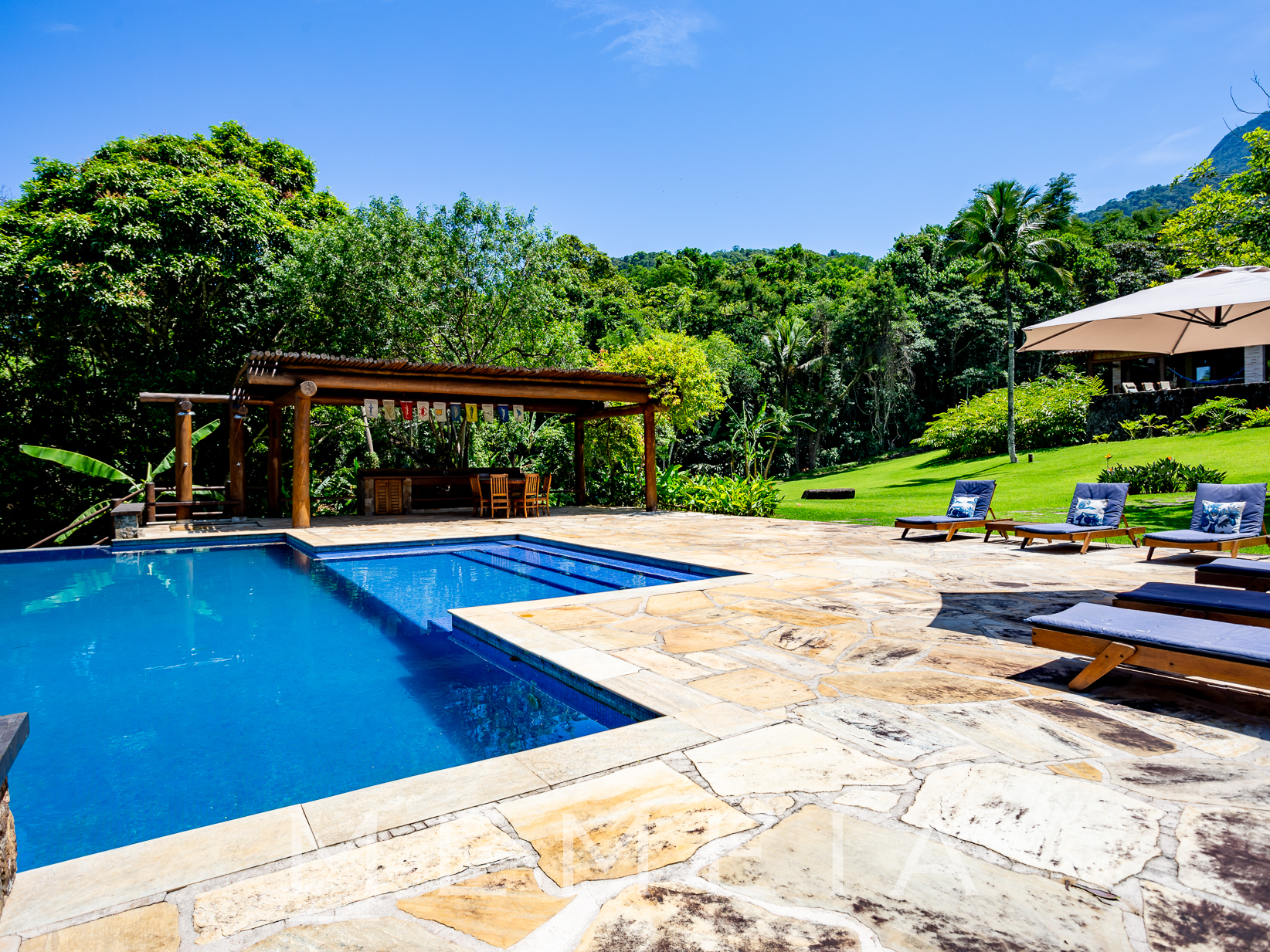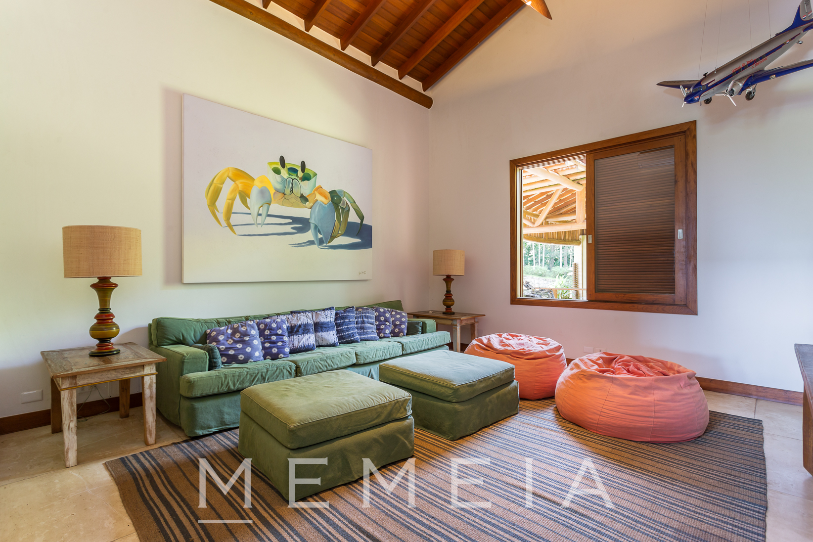 Em um refúgio único, este imóvel é abraçado por hectares de Mata Atlântica exuberante, proporcionando uma experiência imersiva na natureza. A inspiradora vista do canal de Ilhabela amplia a conexão com o entorno, enquanto um rio e uma refrescante cachoeira no terreno acrescentam à sensação de pureza.. Situado na fronteira entre a civilização e a natureza preservada, o ambiente é marcado pelo suave murmúrio do riacho que alcança até mesmo os dormitórios, proporcionando um ambiente tranquilo. Pássaros, visitantes constantes, adornam as varandas e a cozinha, enriquecendo a atmosfera com suas melodias. Até macacos prego visitam de vez em quando. Quanto à privacidade, a propriedade ostenta a exclusividade de estar localizada no final da última rua, sem vizinhos imediatos, e está elegantemente cercada pelo abraço protetor do Parque Estadual de Ilhabela. O espaço generoso é um convite ao conforto e à convivência. A casa, no estilo "Ranch", exibe um pé direito alto, proporcionando uma sensação de amplitude. Sua ampla varanda e gramado criam o cenário perfeito para a integração da cozinha com a sala de jantar, sala de estar e escritório. Este ambiente acolhedor é ideal para entreter visitas e hóspedes, enquanto o gramado vasto circundante abraça a casa e a piscina de fundo infinito. As quatro suítes espaçosas, todas com varandas voltadas para a Mata Atlântica, oferecem um retiro privado e tranquilo. Além disso, uma edícula apresenta uma suíte adicional e uma sala de ferramentas, proporcionando flexibilidade de uso. Para acomodar os caseiros, há uma casa separada. O conforto é uma prioridade, evidenciado pela piscina de fundo infinito que proporciona uma visão deslumbrante. A sauna, estrategicamente localizada junto à piscina, oferece relaxamento revigorante. A conectividade é garantida com internet de banda larga, enquanto os armários embutidos, espaçosos e de alta qualidade, proporcionam praticidade e elegância. A suíte principal eleva o luxo com um banheiro equipado com jacuzzi, oferecendo um descanso indulgente. Este é mais do que um simples lar; é um oásis de serenidade, privacidade, espaço e conforto, onde a natureza e a elegância se encontram harmoniosamente.