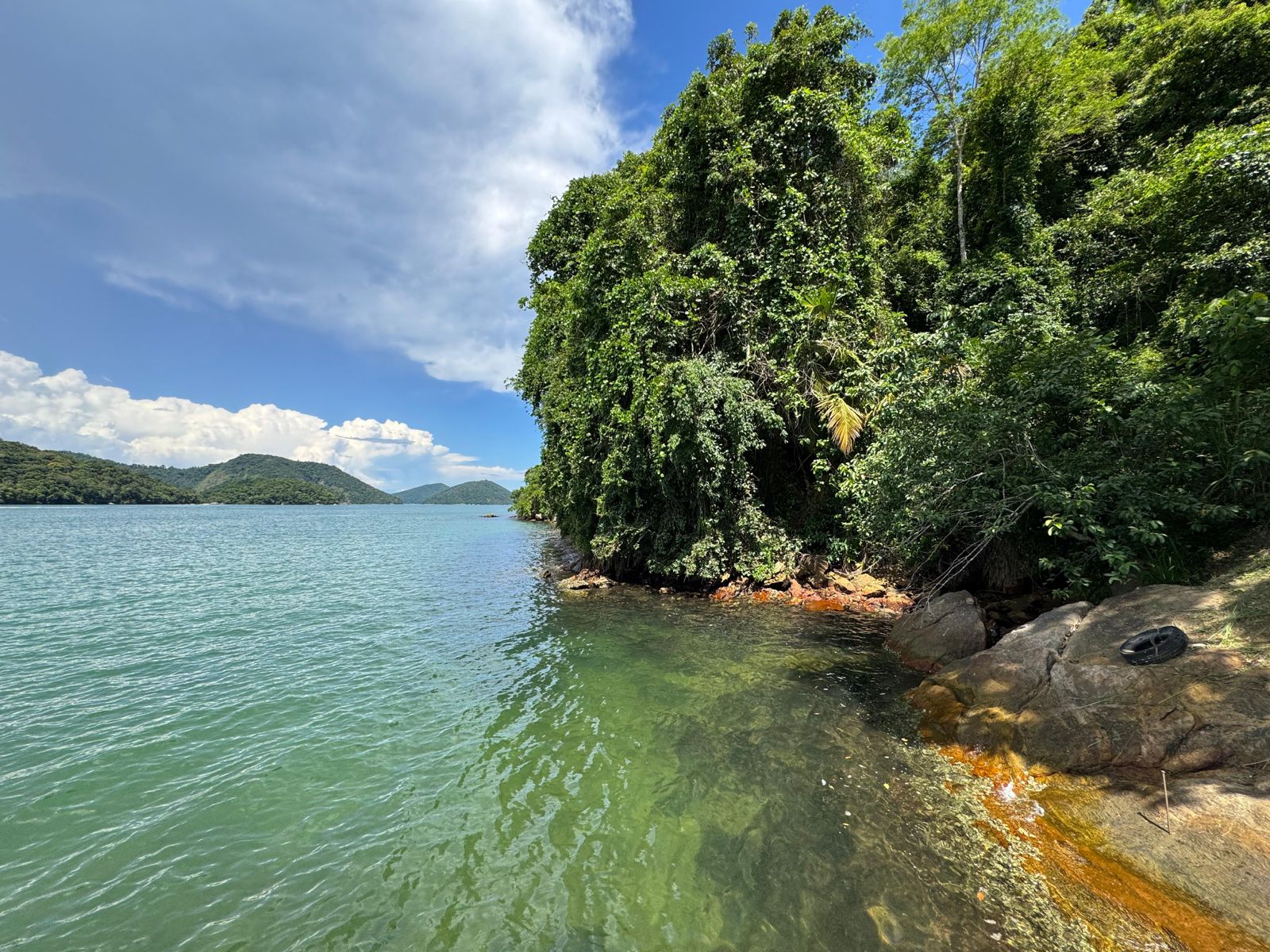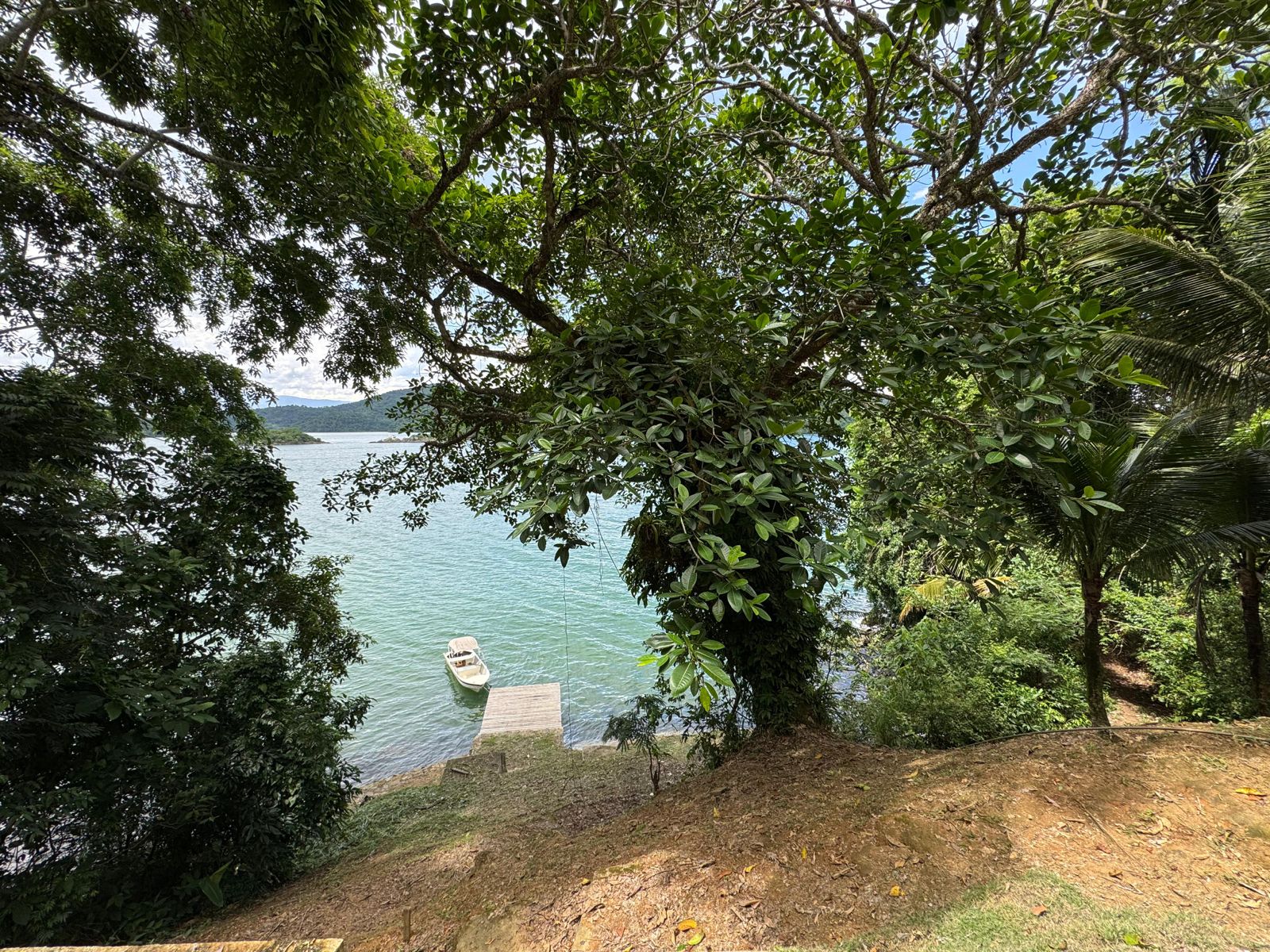 Sitio Boa Sorte. com uma vista para Baía de Paraty Mirim, com acesso rápido pelo mar, aproximadamente 10 minutos de barco. A casa, recém construída ( em fase de acabamentos) possui cerca de 500 m2, com dois pavimentos, ambientes integrados e confortáveis. Conta com 3 suítes na parte de baixo, e na parte de cima uma suíte master com closet conectada à sala de estar e integrada à cozinha,