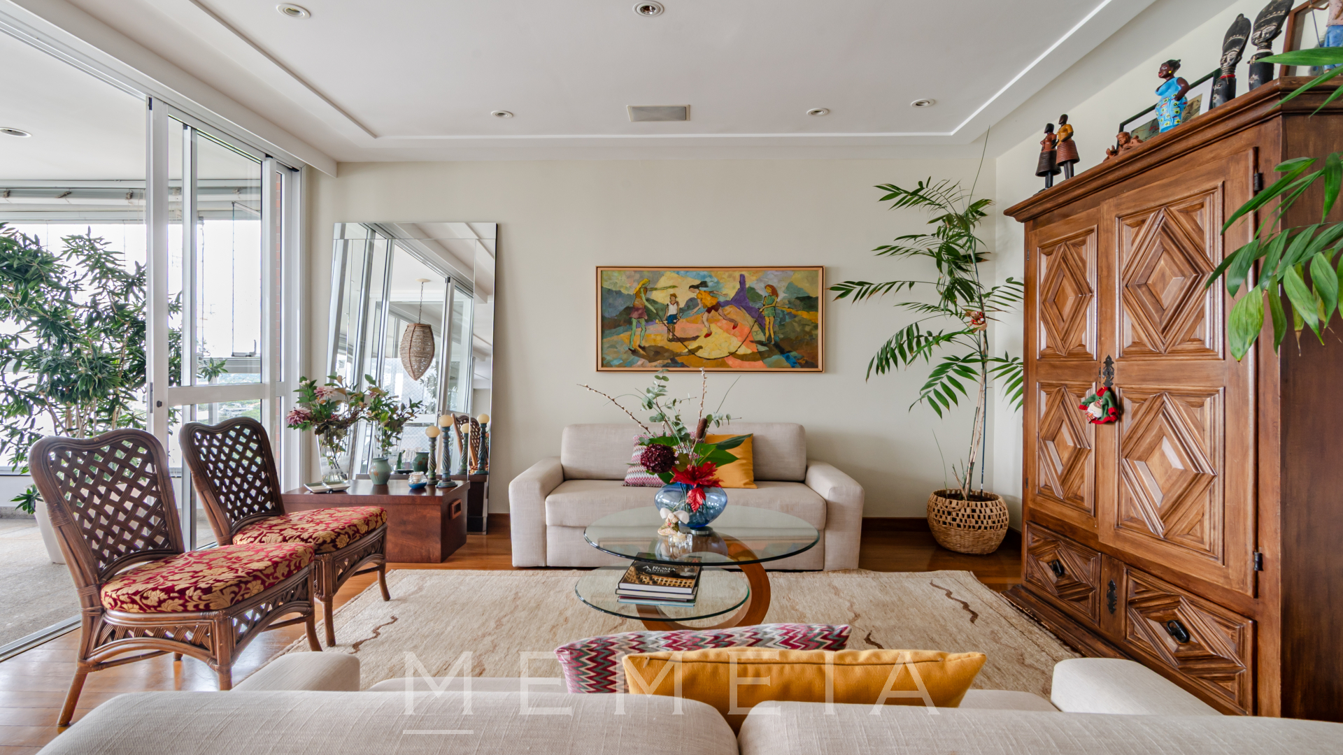 Espaços que fluem através das portas do Living e Sala de Jantar que se abrem para uma convidativa varanda. Sala de TV com portas de correr, que garantem privacidade e aconchego, enquanto o outros ambientes podem estar em uso. A área íntima conta com 2 suites e 2 quartos que dividem um banheiro .A suíte master , com uma dimensão generosa, possui um walk-in closet rico em armários e o banheiro com 2 cubas e hidromassagem. Condomínio com excelente infraestrutura, numa rua tranquila e arborizada do bairro., próxima de lojas, padarias, farmácias e supermercados.