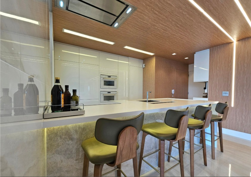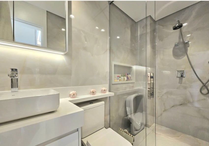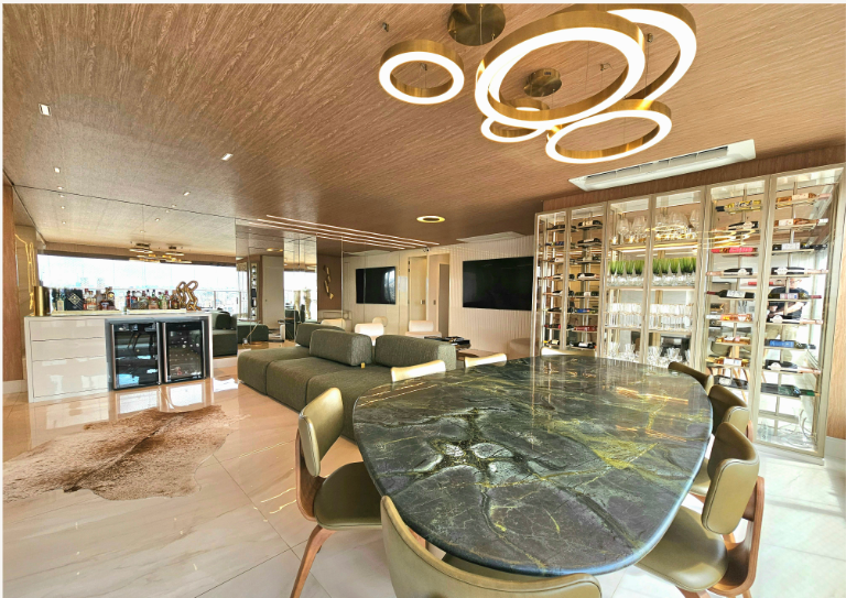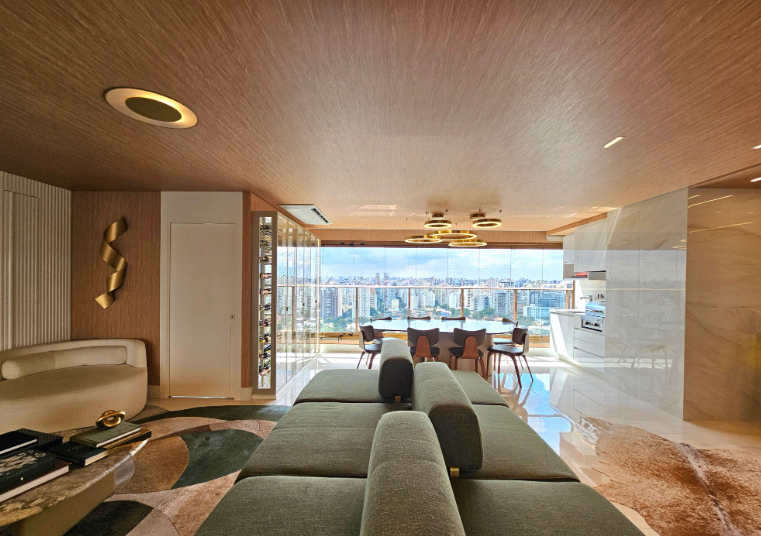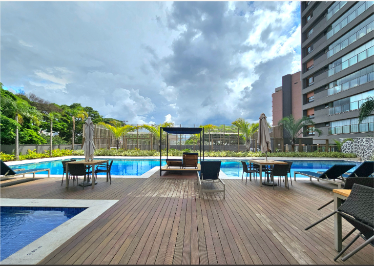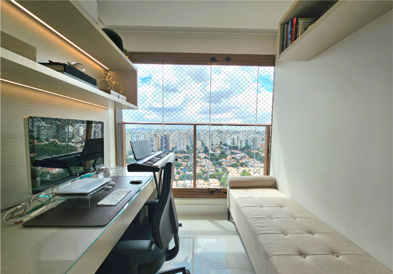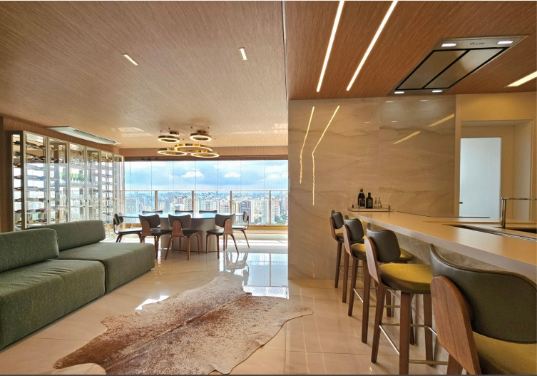 Mobiliado com vista aberta, definitiva e impressionante. A integração entre sala e varanda ampliou o espaço social, que hoje comporta três ambientes bem definidos. A sala de jantar ocupa o ponto mais privilegiado do apartamento: em um andar altíssimo, a vista é permanente, ampla e absolutamente desobstruída, um dos atributos mais valorizados deste imóvel. Cada espaço foi cuidadosamente composto, com materiais, texturas e escolhas que tornam os ambientes acolhedores, elegantes e prontos para uso imediato. São três suítes, todas com ar-condicionado, armários sob medida e grandes janelas que emolduram a vista definitiva da cidade. A suíte principal ainda conta com um closet bem dimensionado. No lazer, o condomínio oferece estrutura completa: piscinas coberta e descoberta, saunas, sala de massagem, brinquedoteca, playground de grandes proporções, petplace, sala de jogos, salão de festas, espaço gourmet e duas áreas com churrasqueira. A academia é equipada pela Life Fitness. Um apartamento para quem busca um imóvel pronto, mobiliado, com projeto atual e diferenciais reais.