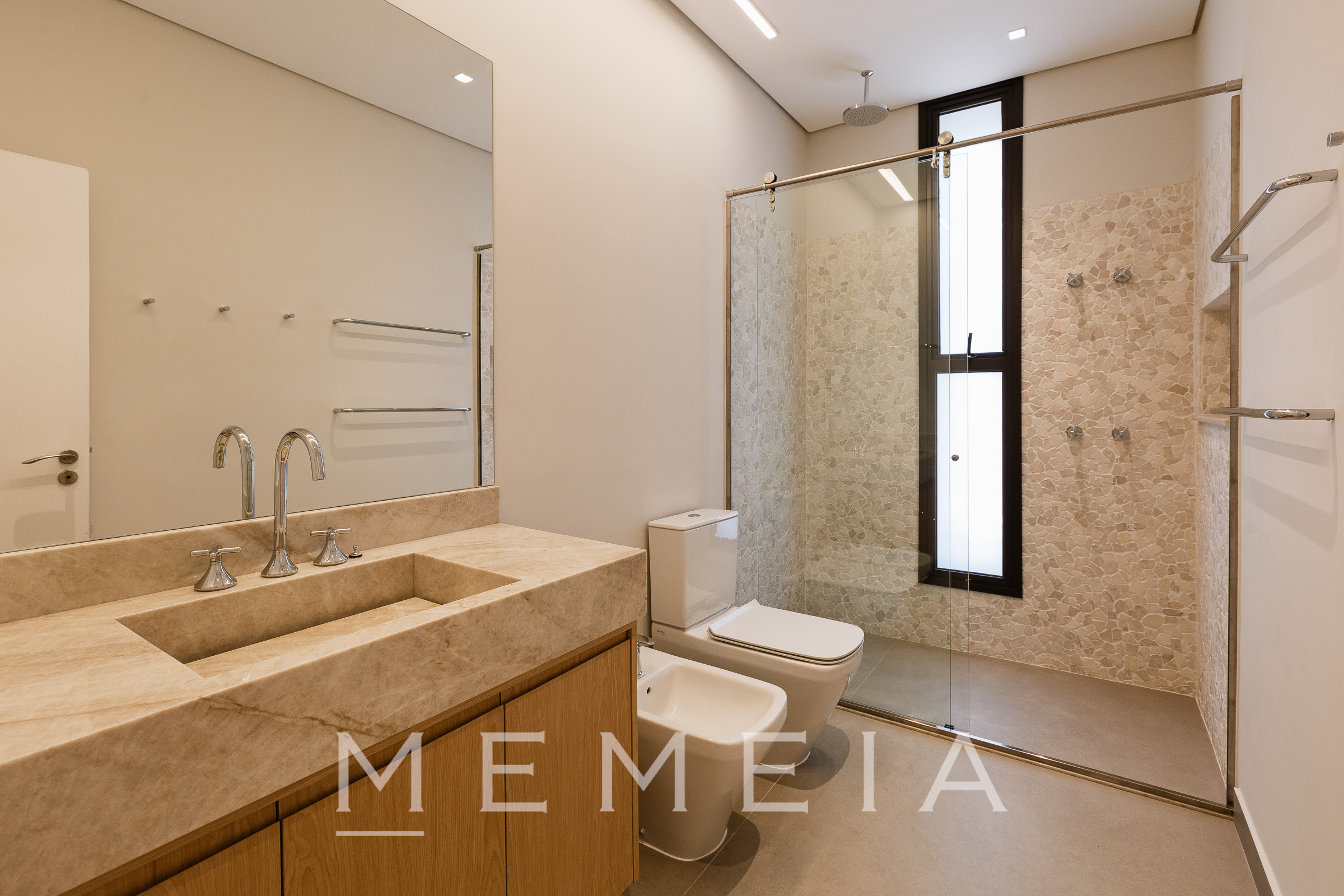 Casa nova em condomínio, com ambientes amplos e muito iluminados. A cozinha está totalmente equipada, e na sala de estar há uma adega. Como lazer, a casa tem piscina e sauna bem espaçosa.