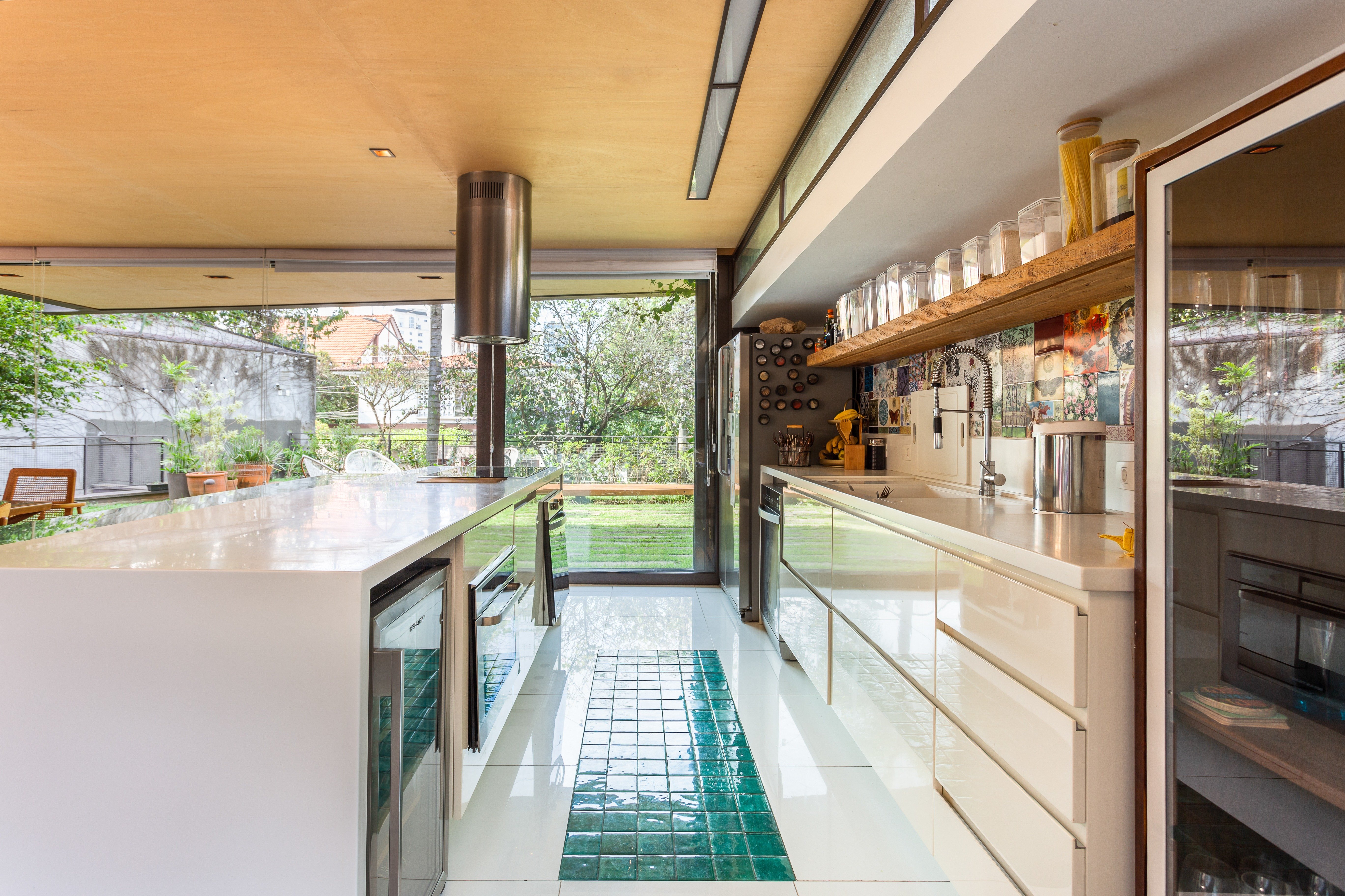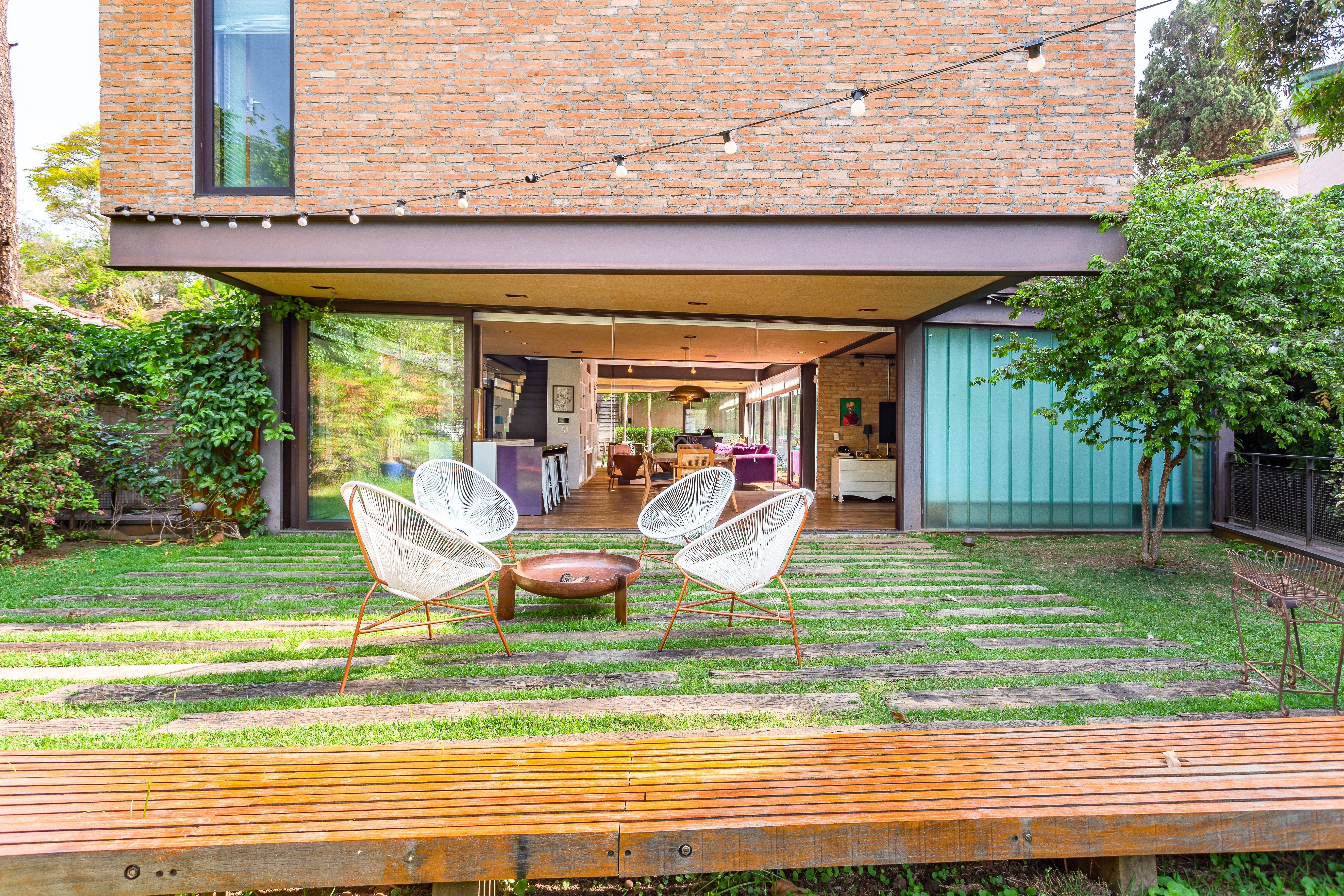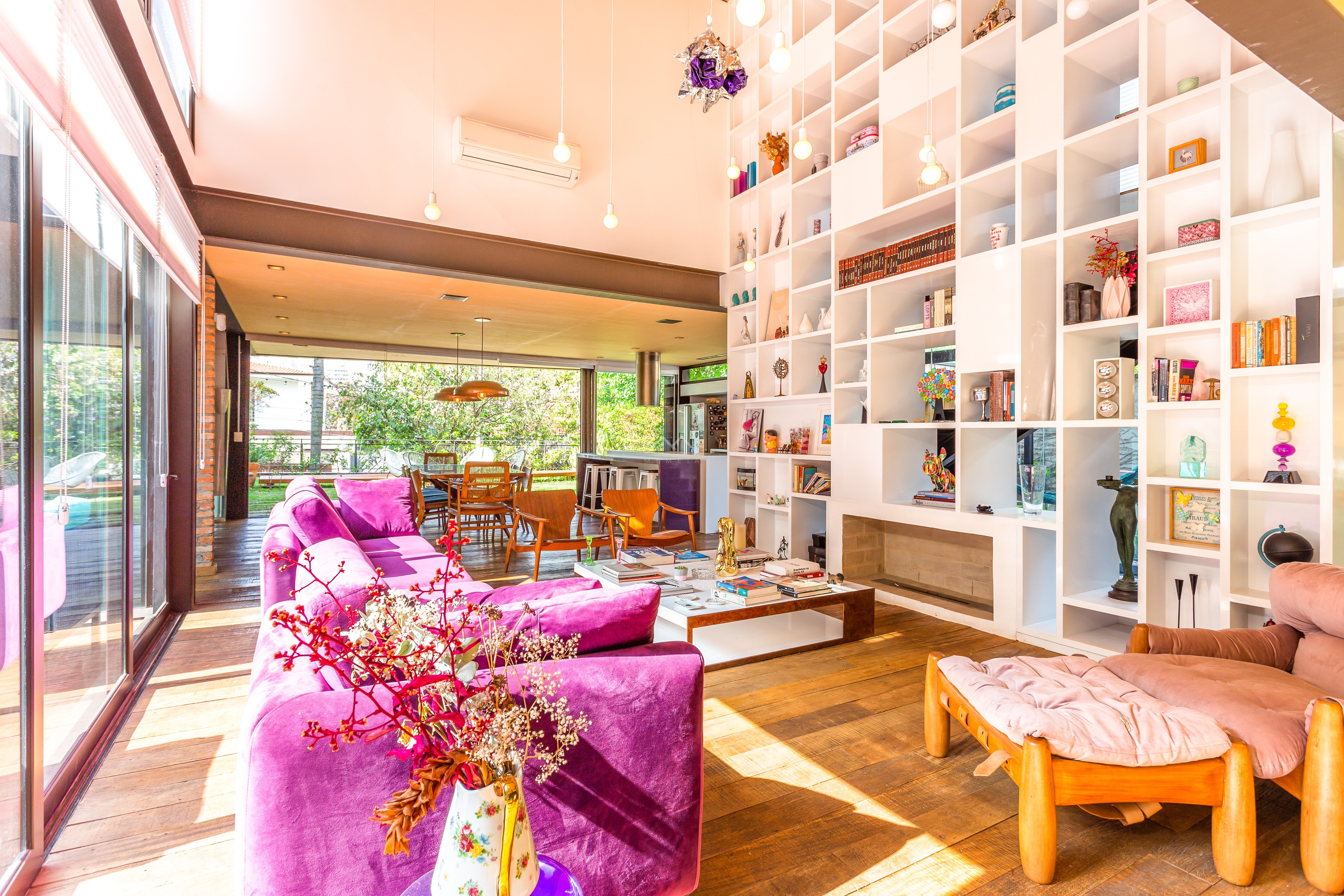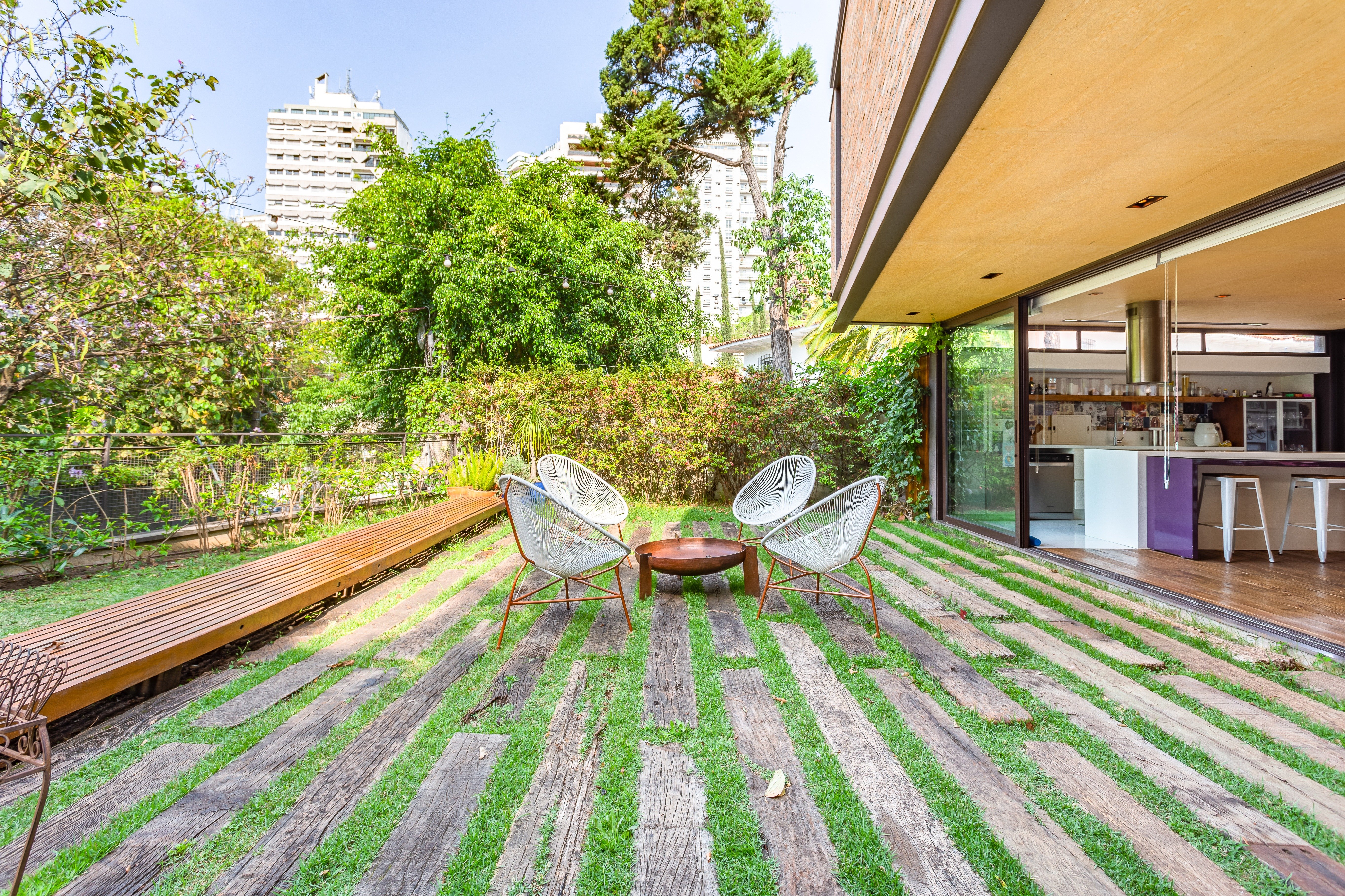 No térreo sala aberta para jardim na frente e fundo do imóvel muito integrado, inclusive cozinha aberta para a sala, Sala de tv , espaço gourmet voltado para piscina. suite principal no andar superior , suite americana ou dois quartos que dividem um banheiro. Na cobertura mais uma grande sala com banheiro completo, podendo ser um escritório ou uma quarta suite. Edícula no jardim com dois andares, sala de brinquedo e academia no andar superior. Garagem no nível da rua, quarto de funcionários e lavanderia.