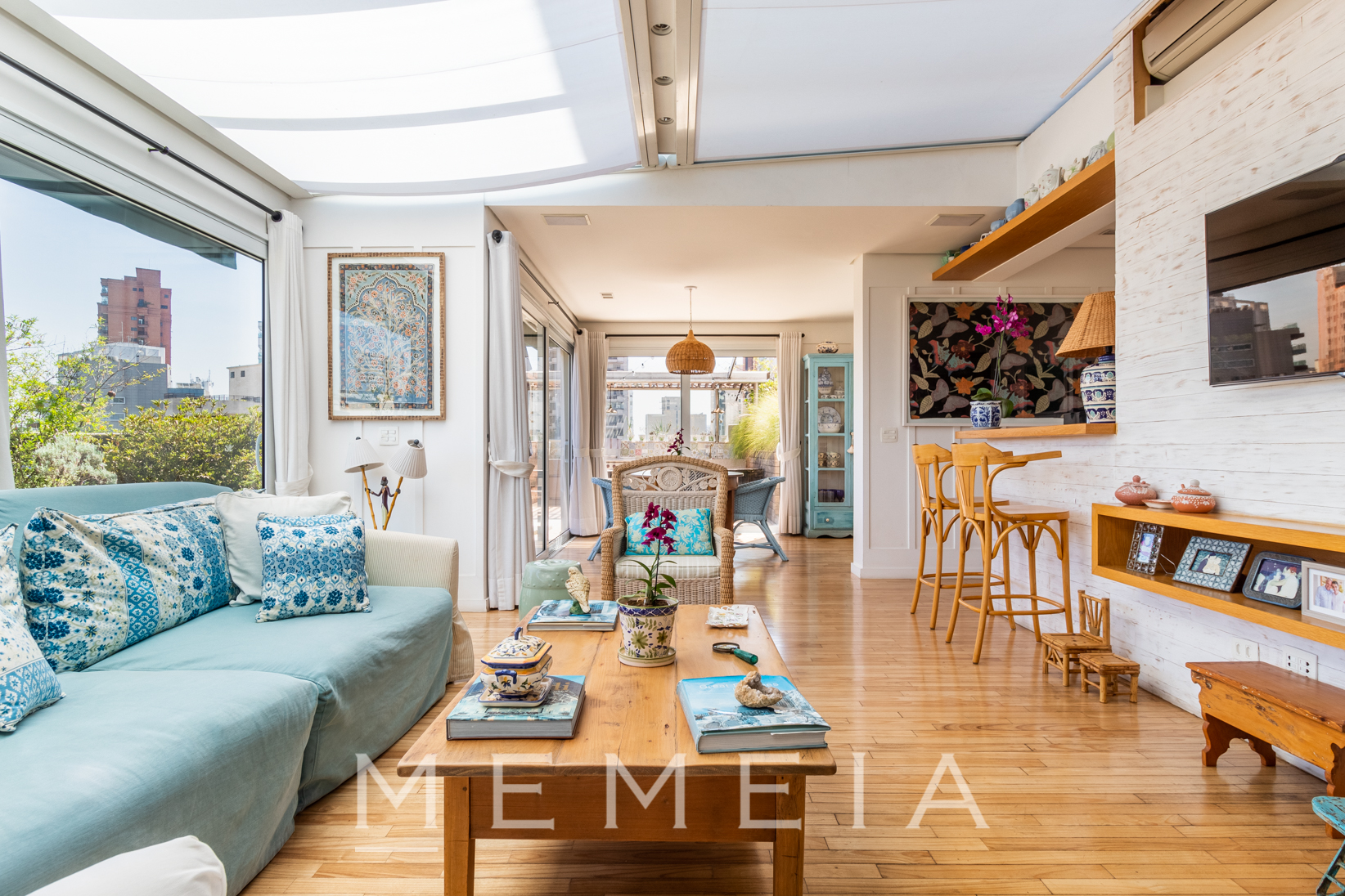 Um apartamento espaçoso e luminoso, localizado em uma cobertura com uma vista panorâmica e pôr do sol deslumbrantes. Com dois pisos e uma piscina privativa, esta residência foi renovada para oferecer conforto e praticidade aos moradores.