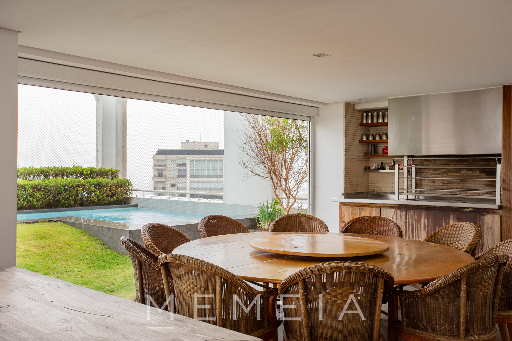 Cobertura com projeto de arquitetura assinado por Toninho Noronha e paisagismo de Isabel Duprat. Planta fluida, integração total com o jardim gramado e área gourmet com toldo retrátil Hunter Douglas. Suítes amplas e bem distribuídas, marcenaria sob medida da Taniguchi, caixilhos Panoramah e louças Toto. Elevador de shabat no prédio.