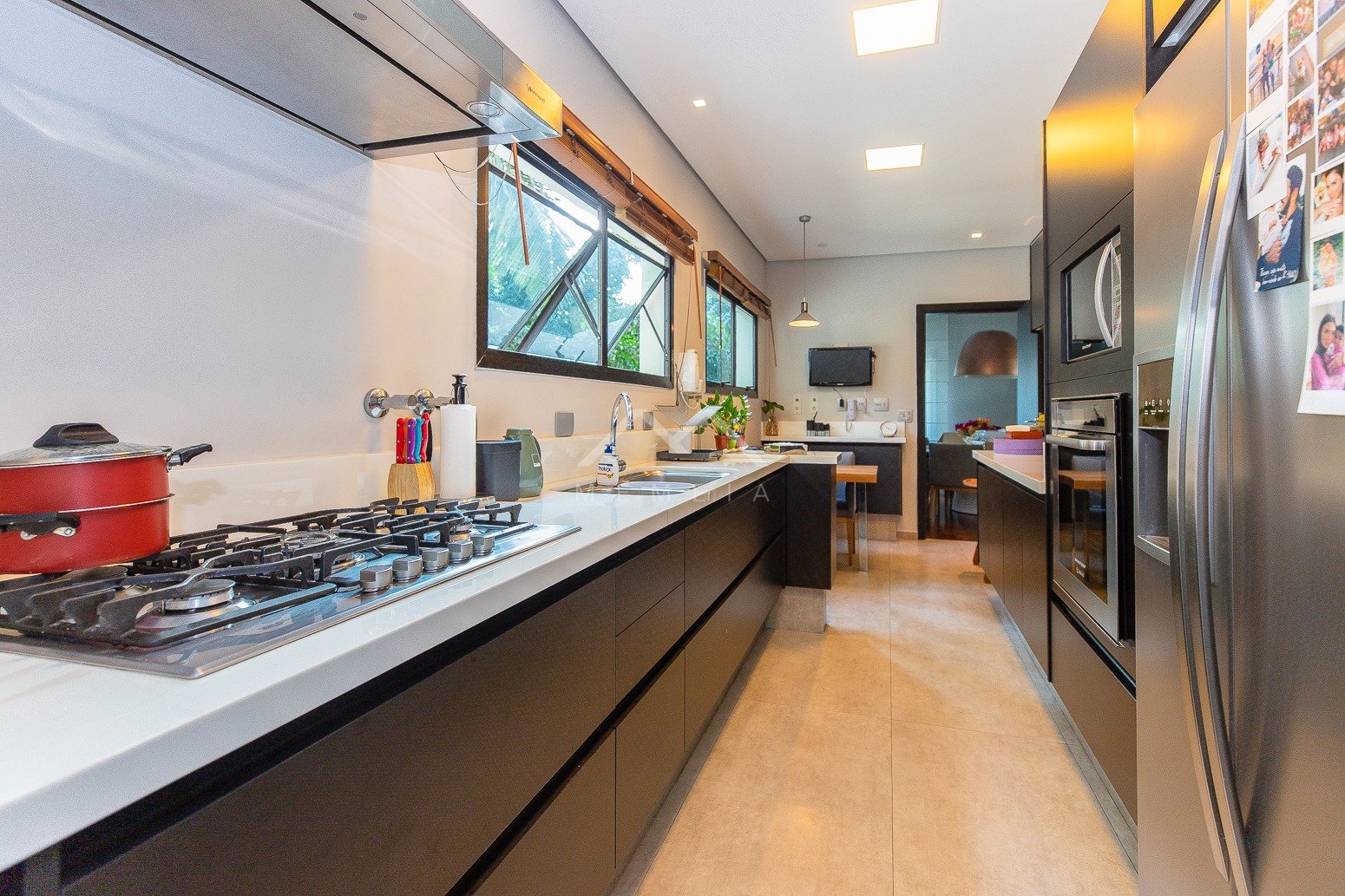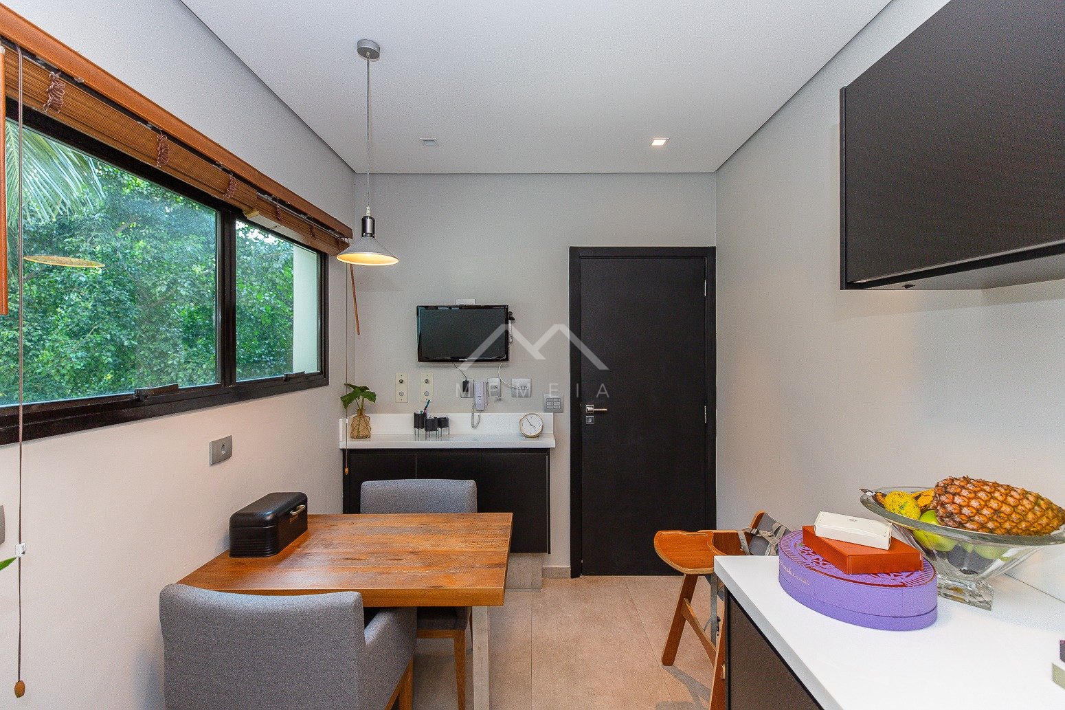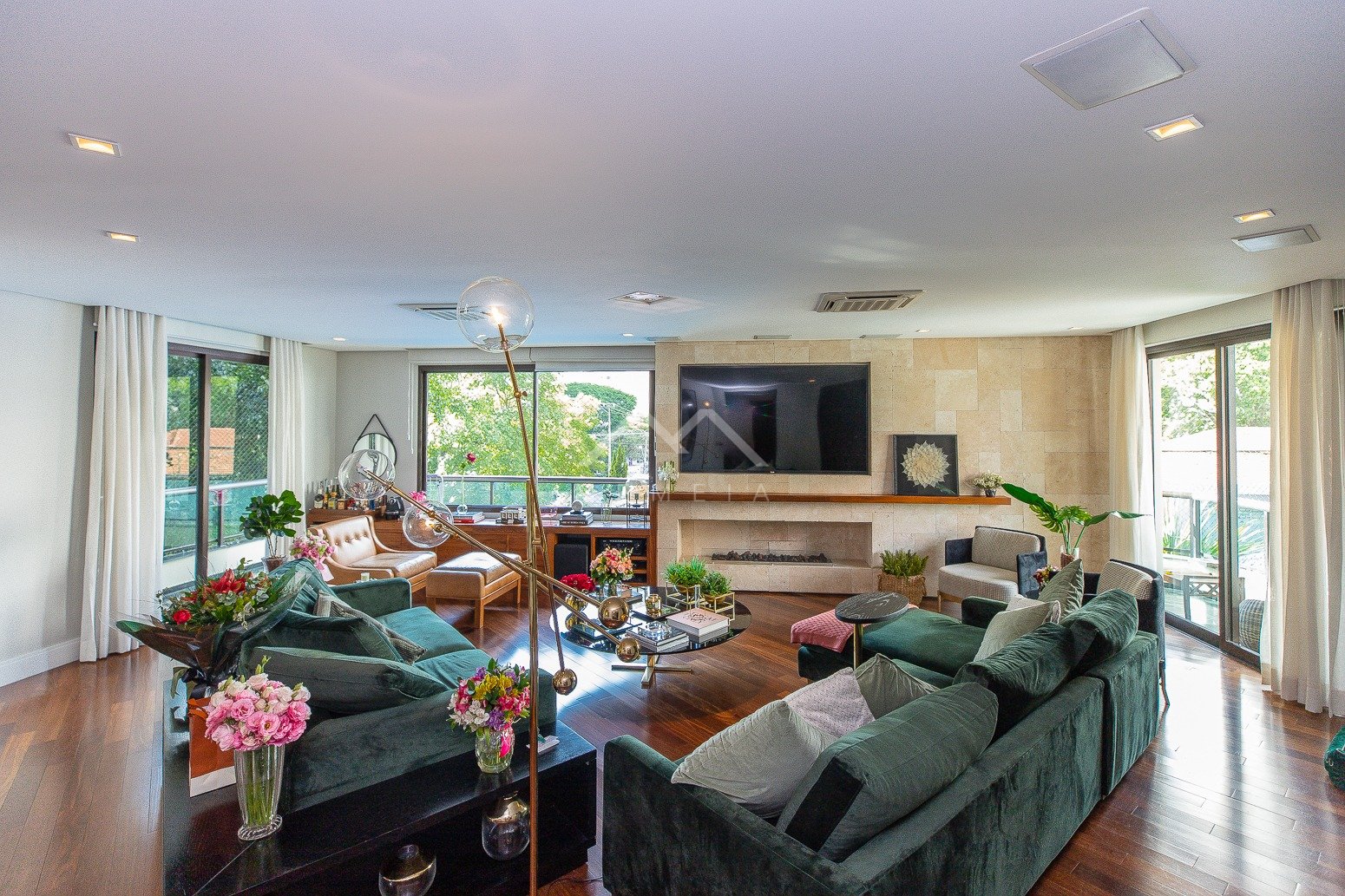 Todo reformado com projeto assinado por arquiteto, este apartamento esbanja charme e requinte. As janelas enquadram o verde das copas das árvores trazendo uma atmosfera especial para os interiores, com cara de casa suspensa. Na planta original eram quatro dormitórios, após a transformação um deles foi convertido em home theater integrado ao living, e a suíte máster incorporou outro para ampliar o closet e o banheiro, que ficaram fantásticos. A segunda suíte é espaçosa e aconchegante. Na cozinha, a marcenaria feita sob medida com acabamento preto conferiu mais estilo ao décor. O condomínio, que tem área de lazer completa, está muito bem localizado em Moema, pertinho do shopping Ibirapuera, rodeado de ótimas opções gastronômicas, além de comodidades como mercado, padaria, academia e farmácia.