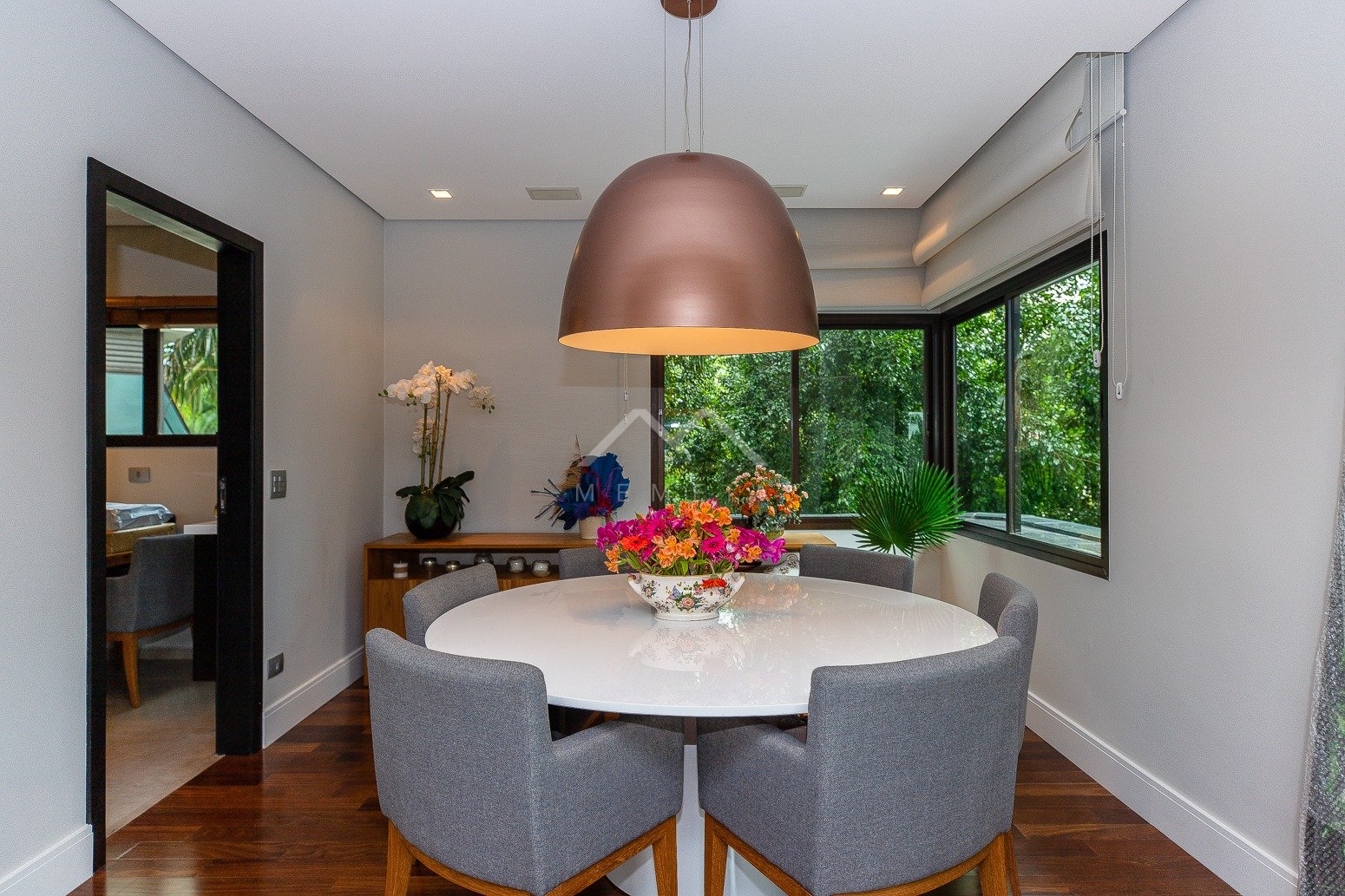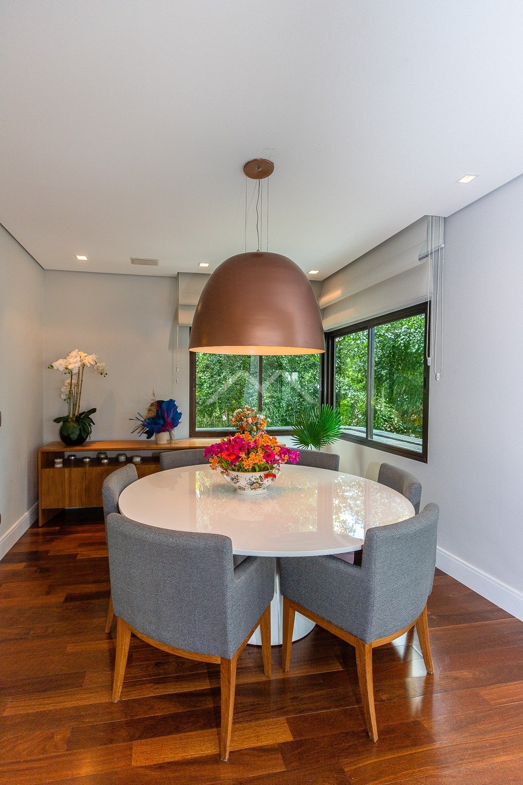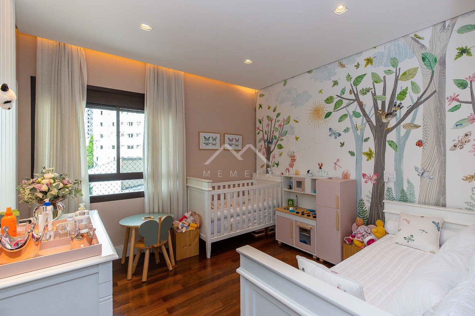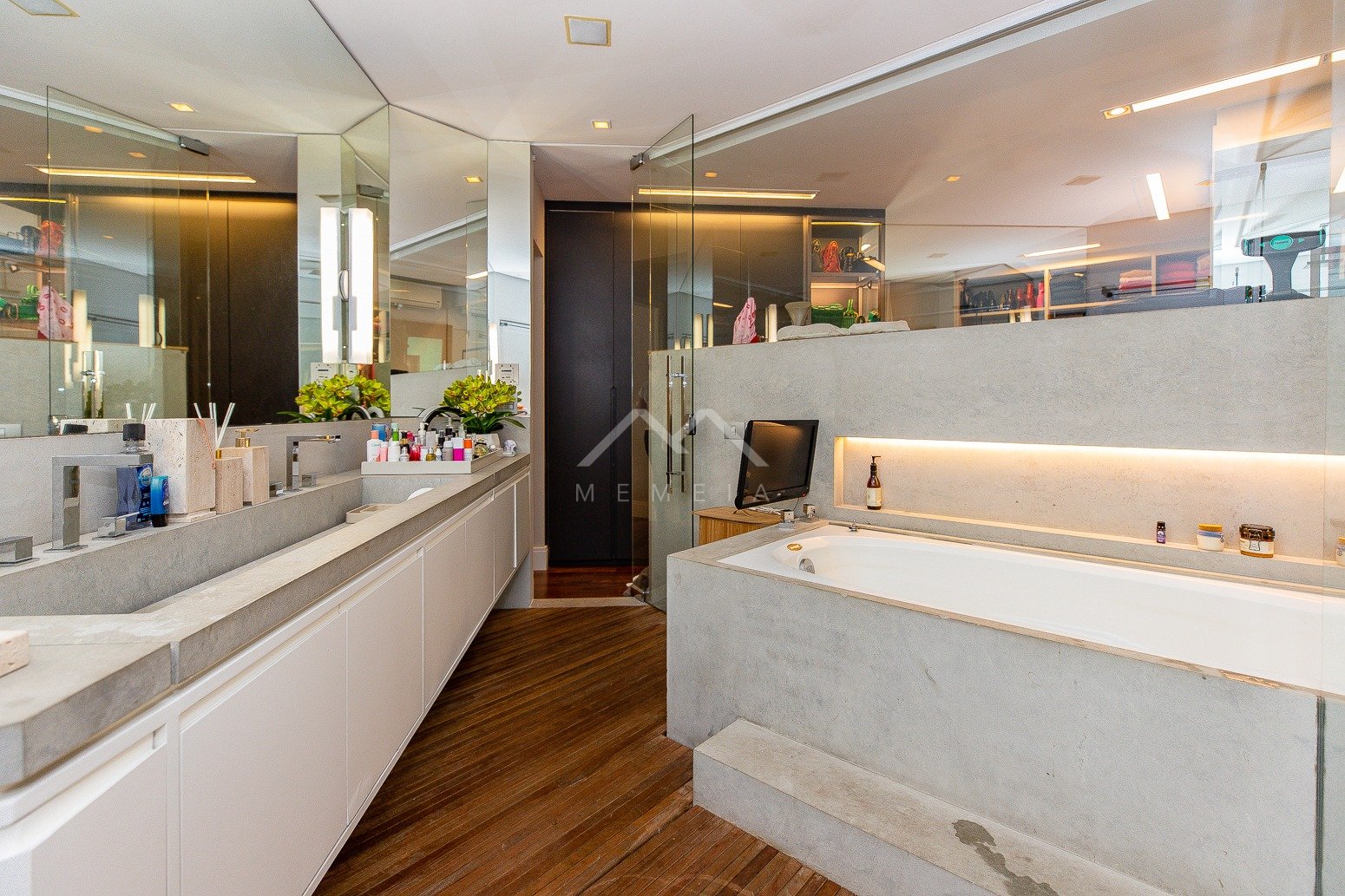 Todo reformado com projeto assinado por arquiteto, este apartamento esbanja charme e requinte. As janelas enquadram o verde das copas das árvores trazendo uma atmosfera especial para os interiores, com cara de casa suspensa. Na planta original eram quatro dormitórios, após a transformação um deles foi convertido em home theater integrado ao living, e a suíte máster incorporou outro para ampliar o closet e o banheiro, que ficaram fantásticos. A segunda suíte é espaçosa e aconchegante. Na cozinha, a marcenaria feita sob medida com acabamento preto conferiu mais estilo ao décor. O condomínio, que tem área de lazer completa, está muito bem localizado em Moema, pertinho do shopping Ibirapuera, rodeado de ótimas opções gastronômicas, além de comodidades como mercado, padaria, academia e farmácia.