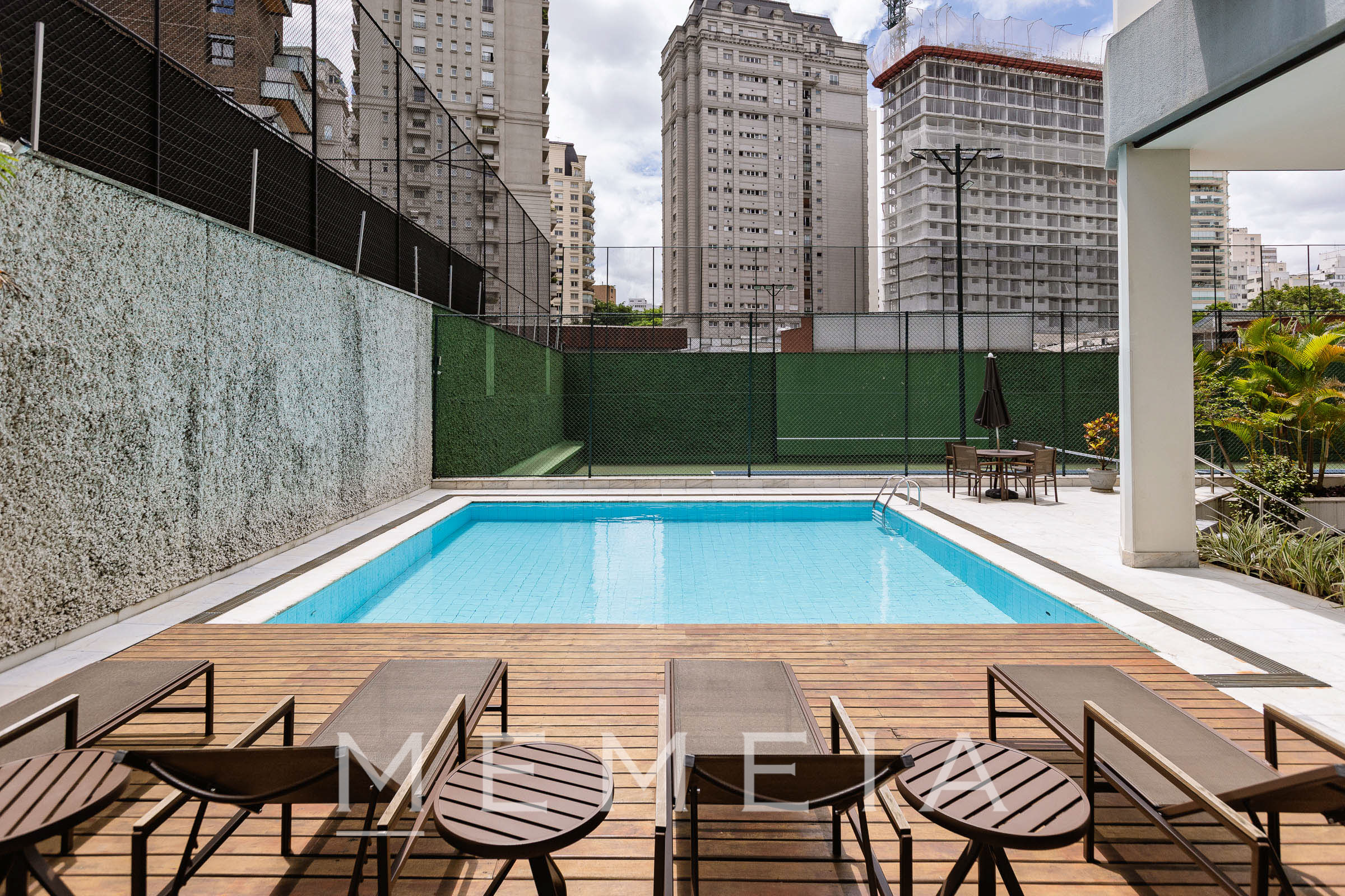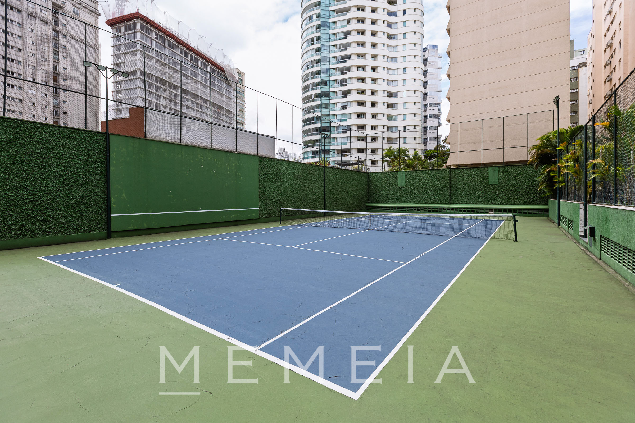 Sala de estar e jantar, varanda, cozinha, 1 suite com pequeno closet Mais um quarto com banheiro completo. 2 vagas privativas no sub-solo. Condomínio com vagas externas para visitantes, piscina, quadra de tênis tamanho oficial, salão de festas, churrasqueira, gerador, sala de ginástica, serviços de arrumação e limpeza, inclusive nos fins de semana e feriados, em todas as unidades.