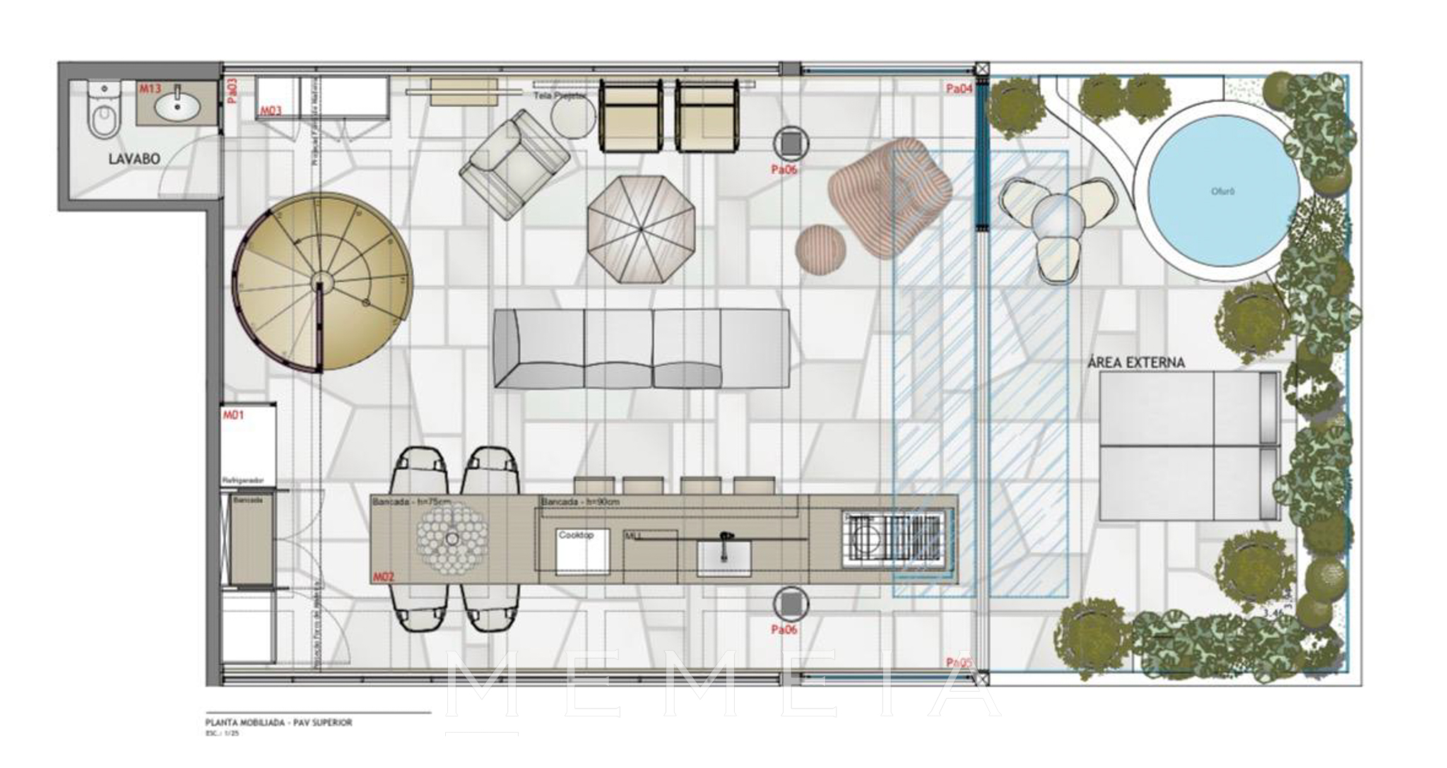 Cobertura moderna e com design contemporâneo, localizada em um edifício charmoso de linguagem brutalista nos Jardins. No primeiro piso, a área íntima conta com dois quartos, sendo uma suíte com closet. No segundo piso, a área social é composta pela cozinha integrada ao living, incluindo uma parrilla digna de quem leva o assado a sério. O terraço completa o espaço com charme e descontração, oferecendo vista aberta e um ofurô, criando um cenário perfeito para receber amigos e relaxar.