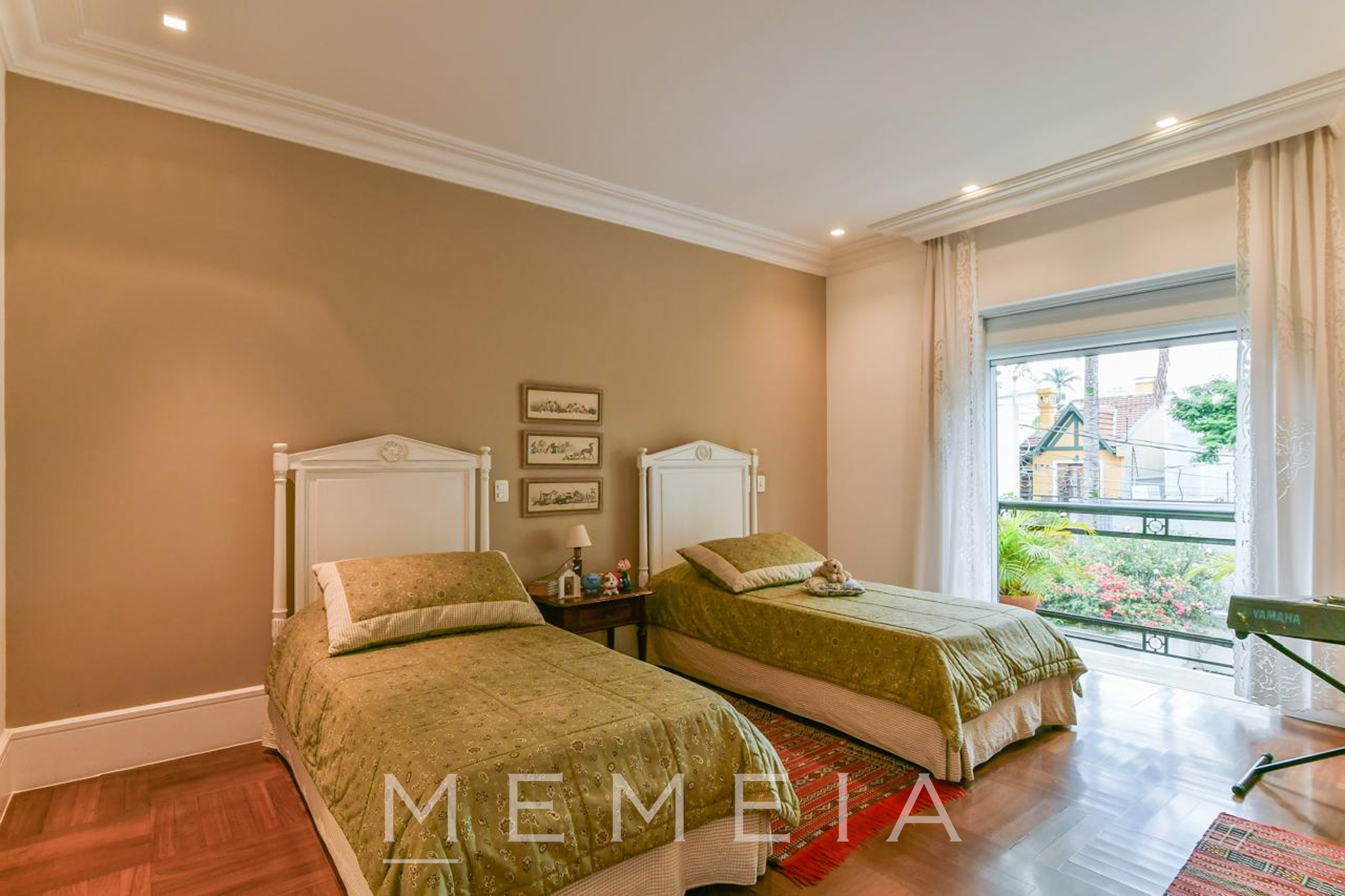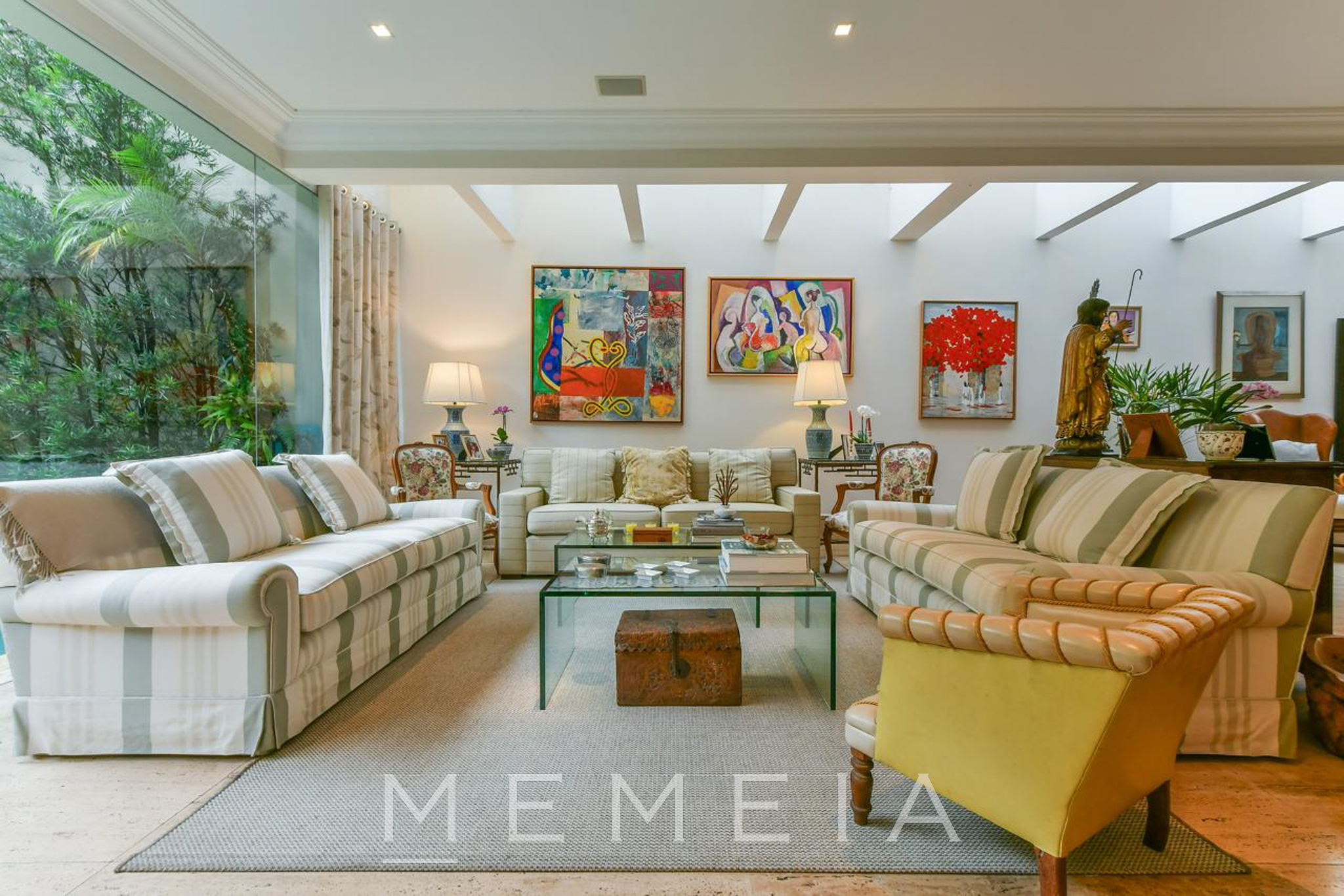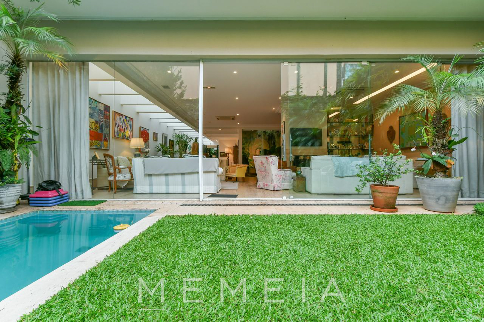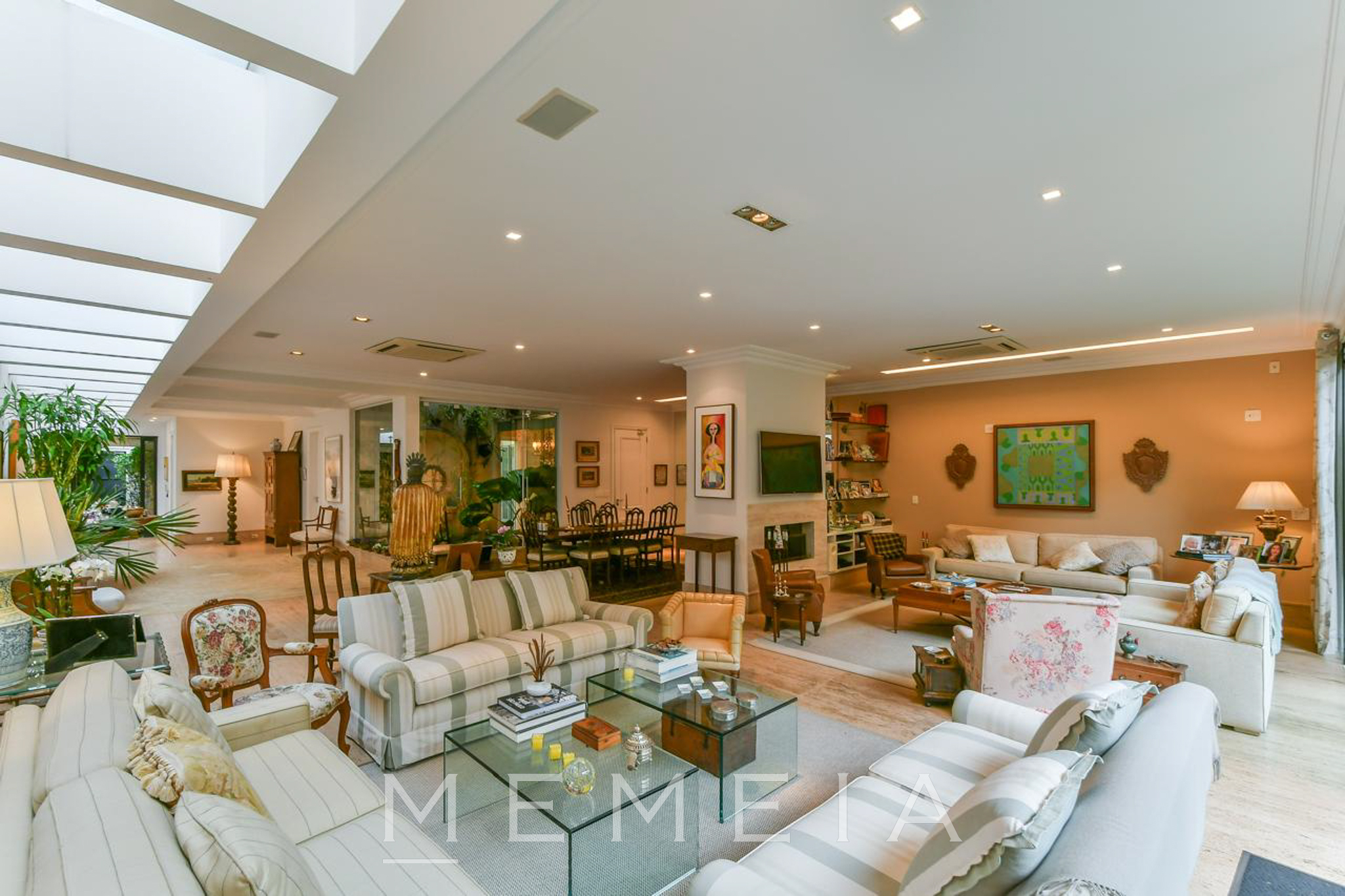 Possui 3 suítes espaçosas com varandas, ar condicionado e armários embutidos, sendo a master com closet, banheiro Sr. e Sra. e escritório. Living com lareira dupla integrado ao jardim e piscina, sala de jantar, cozinha conectada à copa e jardim de inverno com fonte. Piso em mármore travertino e taco de madeira. Conta com 2 vagas de garagem (com opção para 3) e subsolo com dependências de serviço. Pronta para mora.