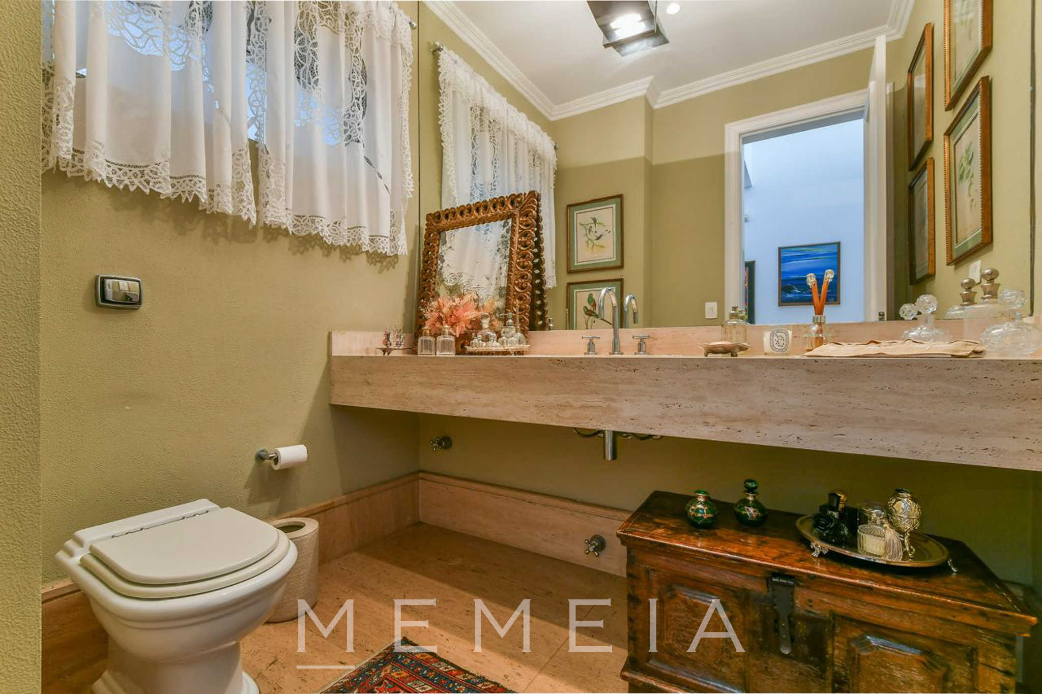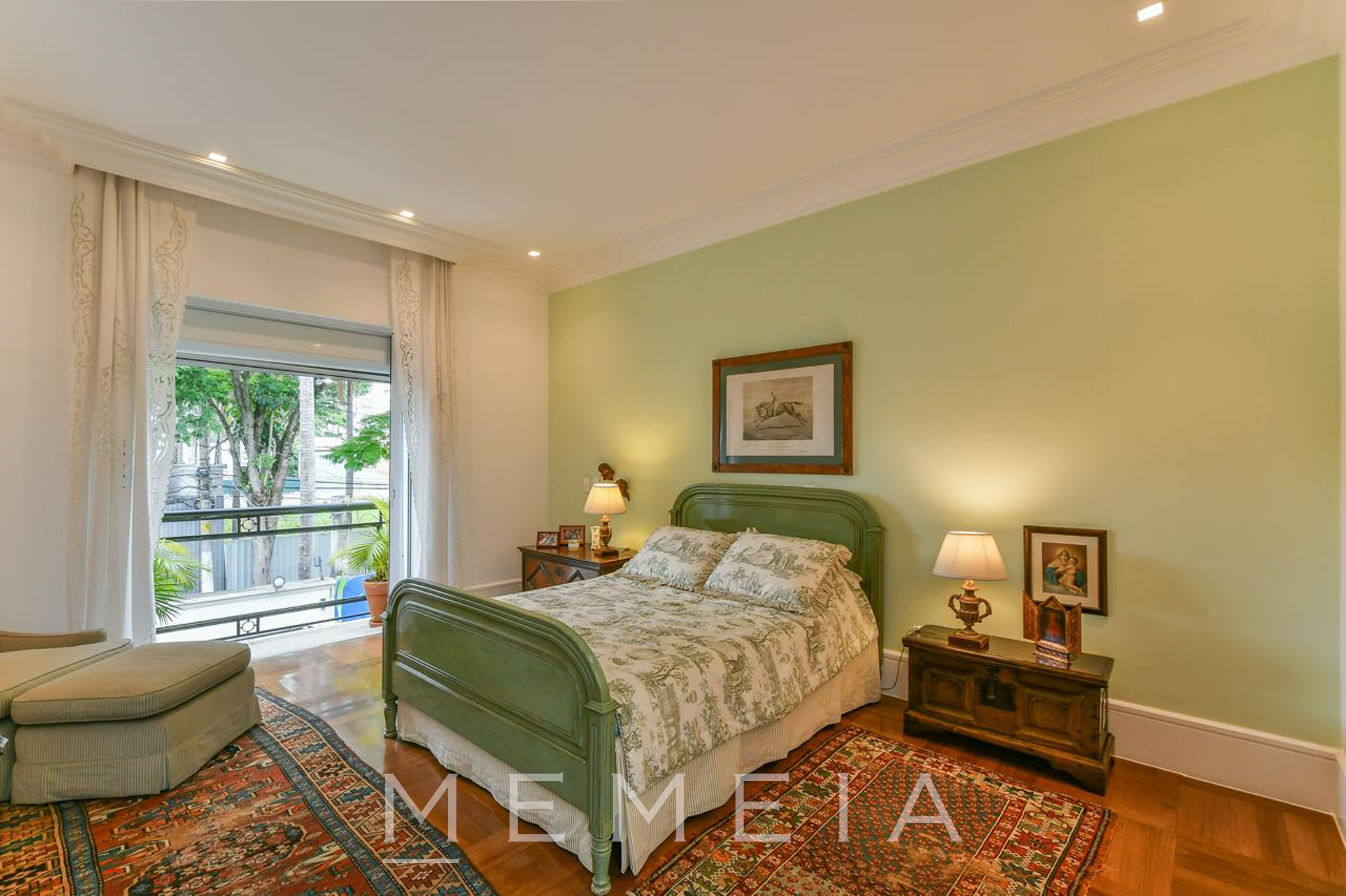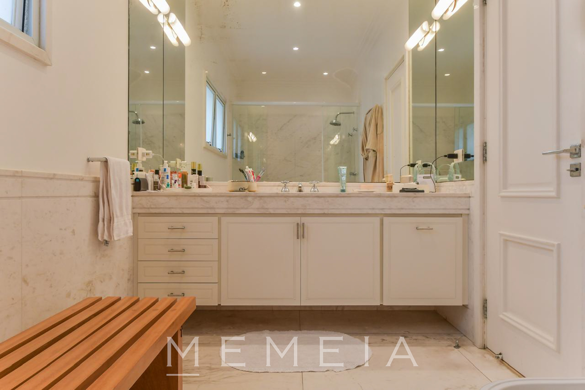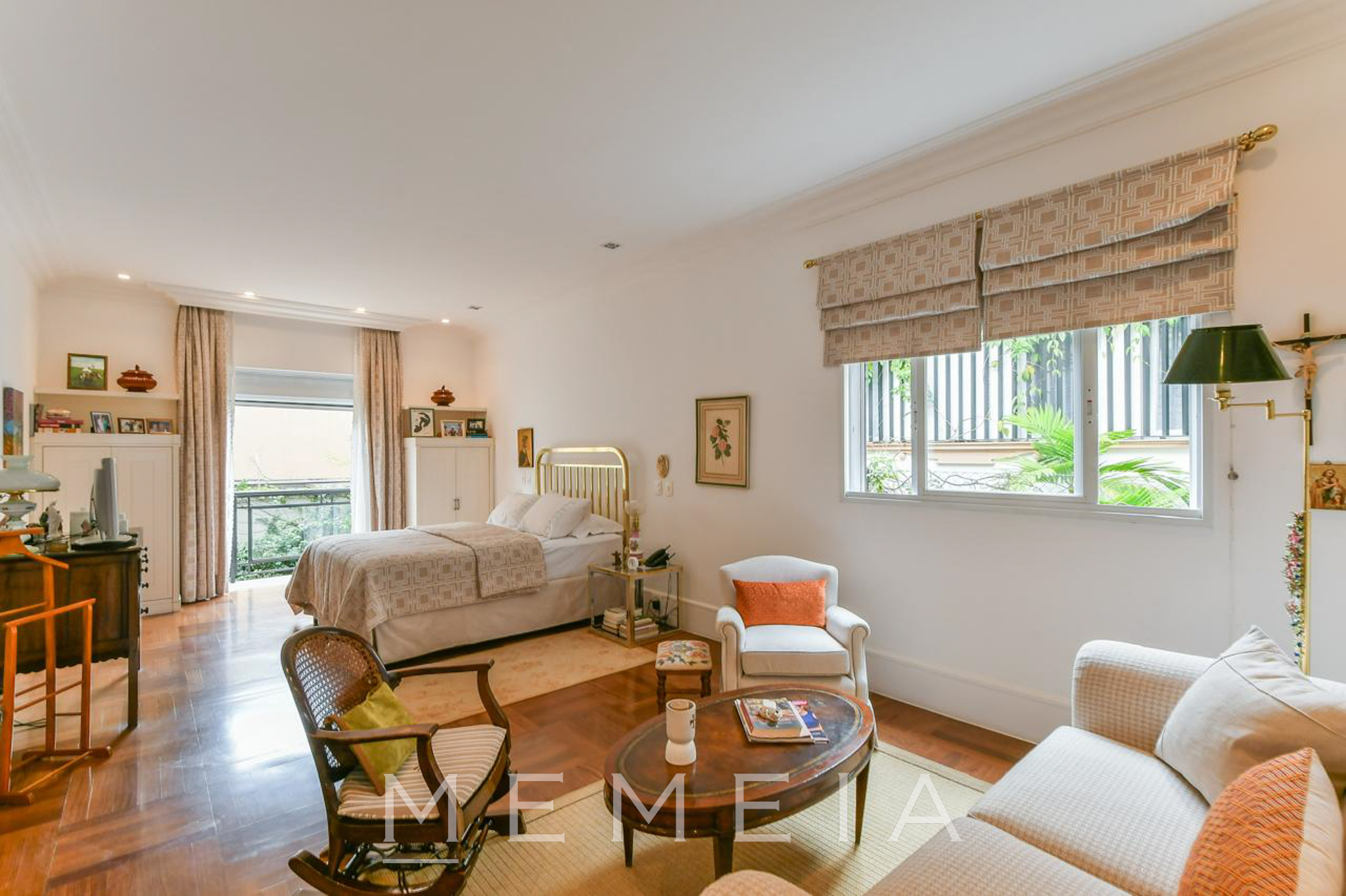 Possui 3 suítes espaçosas com varandas, ar condicionado e armários embutidos, sendo a master com closet, banheiro Sr. e Sra. e escritório. Living com lareira dupla integrado ao jardim e piscina, sala de jantar, cozinha conectada à copa e jardim de inverno com fonte. Piso em mármore travertino e taco de madeira. Conta com 2 vagas de garagem (com opção para 3) e subsolo com dependências de serviço. Pronta para mora.