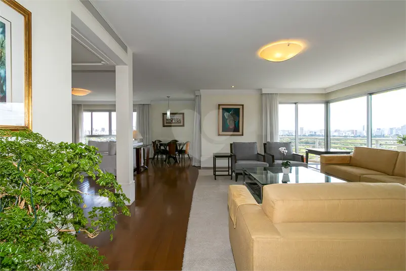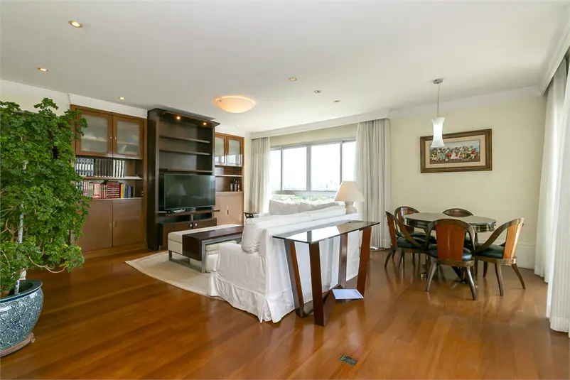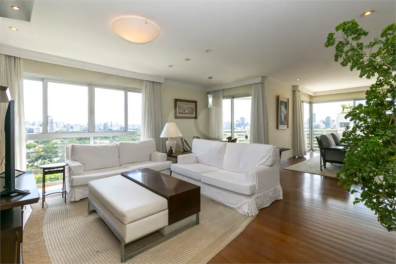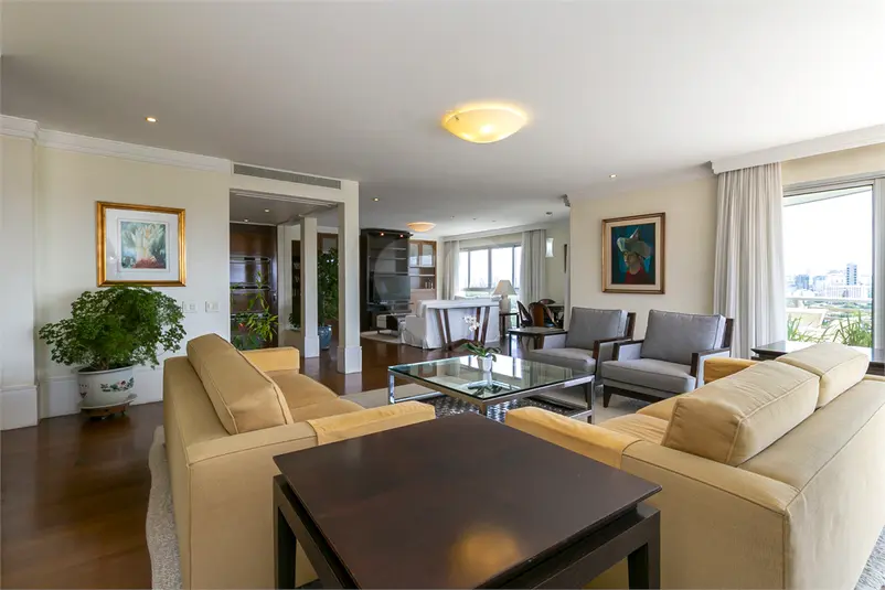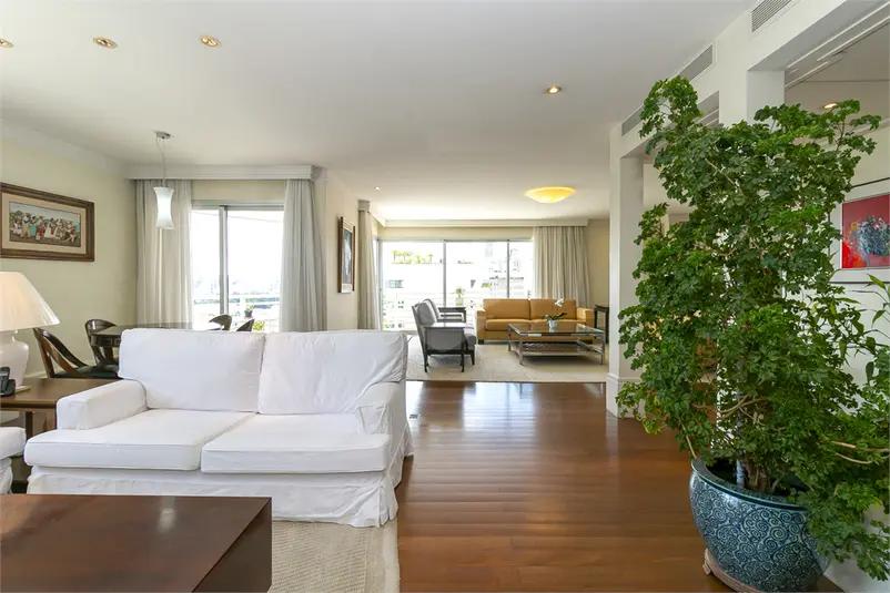 Este amplo imóvel no Jardim Paulista oferece uma das experiências visuais mais impressionantes de São Paulo, com vista permanente para o verde do Jardim Europa. Localizado em trecho valorizado e estratégico, o apartamento em andar alto é banhado por sol graças às suas inúmeras janelas de grande formato. O layout social privilegia a convivência, com salas integradas, varanda contígua a todos os ambientes e um lavabo elegante. O apartamento possui uma suíte principal imponente com varanda própria, closet e banheiros individuais para o casal. Um escritório e uma sala íntima completam o setor de dormitórios. A cozinha, assinada pela Kitchens, é totalmente equipada e integrada a uma copa funcional. A estrutura de serviços é completa, com lavanderia ampla e dois dormitórios de serviço. Na garagem, o diferencial de quatro vagas livres (independentes). O condomínio conta com infraestrutura de lazer total, incluindo piscinas adulto e infantil, depósito privativo, salão de festas e academia.